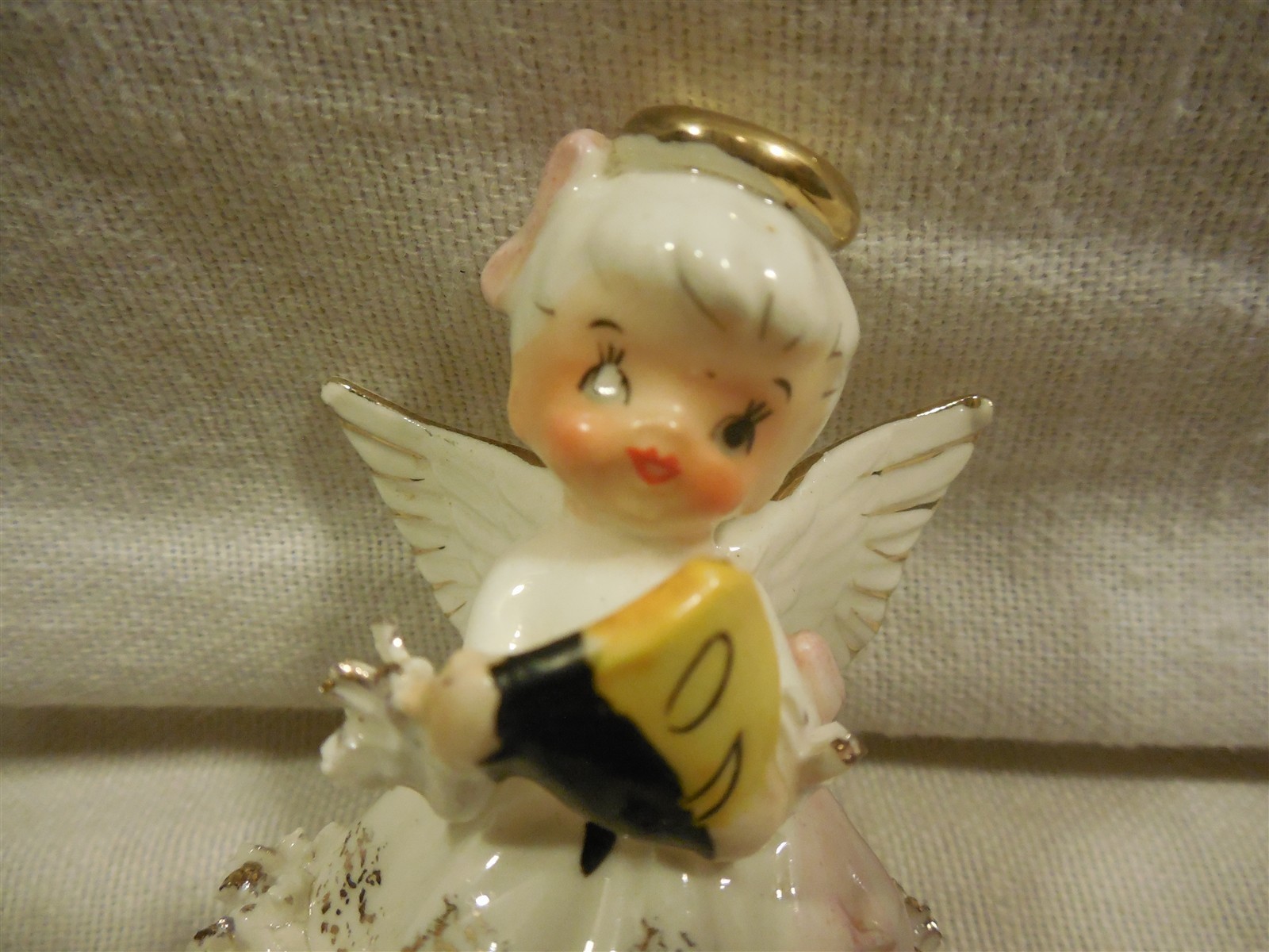 - Vtg Napco Japan Ceramic October Birthday Angel Girl Mini Figurine A4307 3 1/4"