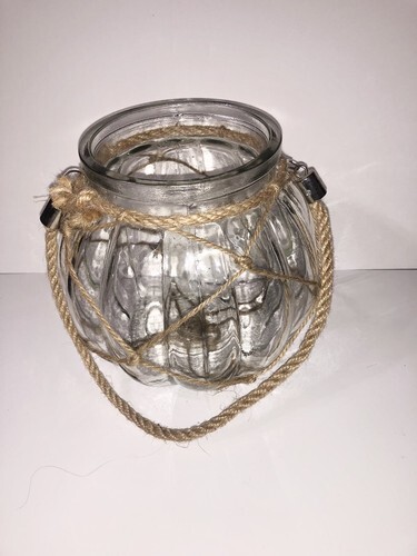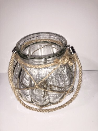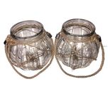 - Vtg Nautical Glass Lantern Candle Holder Planter Rope Handle Coastal 6” X 6”