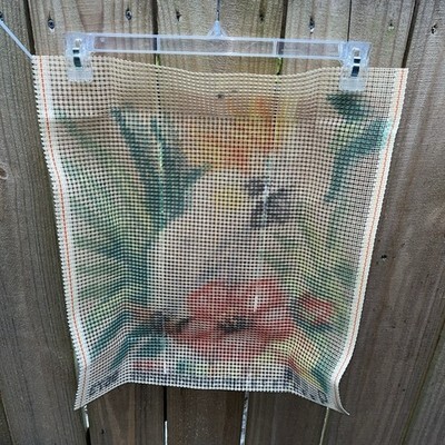 - Vtg Needlepoint Canvas Parrot Bird Hibiscus Panel 16” Sq. Pillow Upholstery 9573