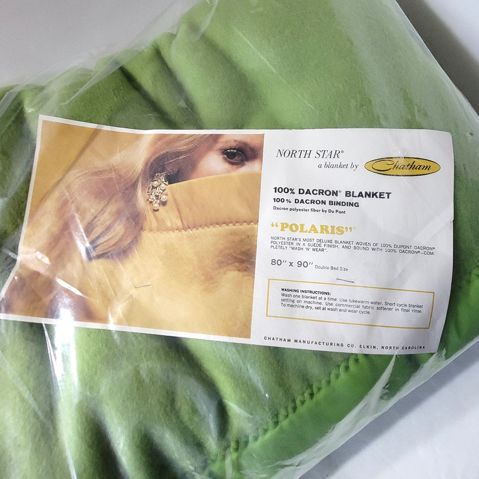 Vtg North Star Chatham Dacron Blanket Nylon Trim Avocado Green 80x90 Full UNUSED