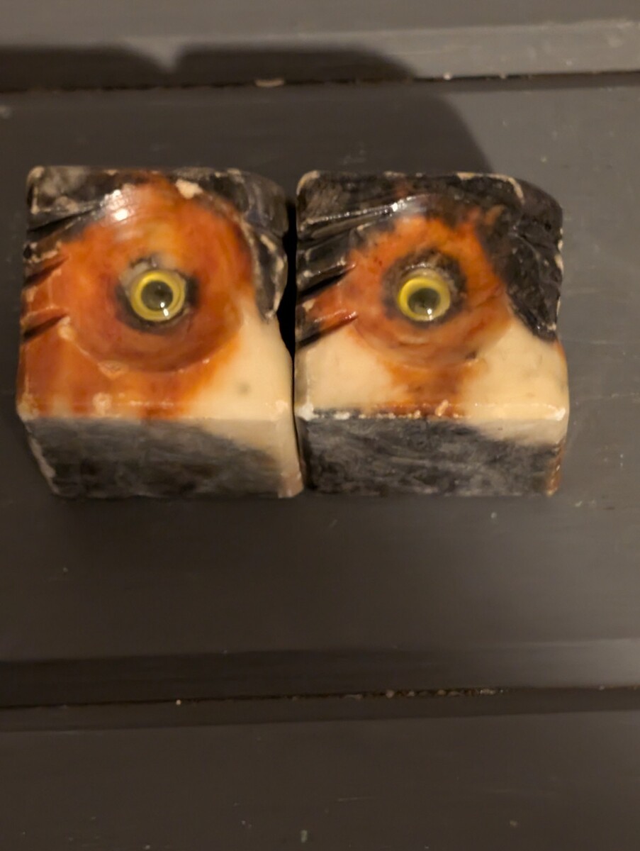 - Vtg Pair 1980 Carved Southwest ALABASTER CARVED OWL PAPERWEIGHTS MADE IN ITALY