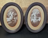 Vtg Pair Cupid Awake Pictures Original Metal Oval 4” Frames c 1897 M B Parkinson