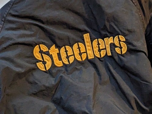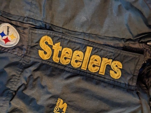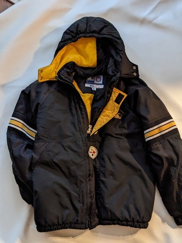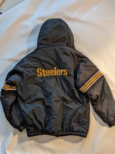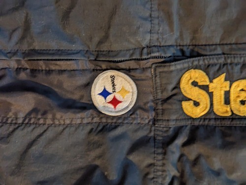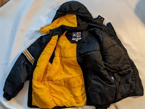 En vente est un vintage use Pittsburgh Steelers Starter NFL Pro Line Puffy Jacket Foot Locker Kids Size XL.