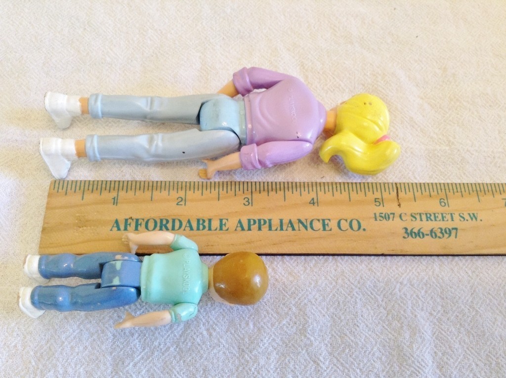 Vintage Playskool Loving Family Teenage Blonde Girl Figure 5.25 in Young Boy 3". Both are in good condition but have slight paint loss and scuffs. Dimensions are shown in the photos. Photos show all sides so please carefully look at images/pictures as they are part of the description and ask any questions before bidding. If you need additional photos please ask. You should be able to enlarge/zoom the images/pictures for even more details. This is the actual item you are buying or bidding on. Please check out my other auctions as I have a 100% feedback rating. I will combine shipping when possible just let me know that you are interested in additional items. Payment is due within 3 days of auction end and I ship as promptly as you pay, generally within 24 hours from receiving payment. I will package this item with the best packaging to make it to your address safely. Super fast shipping to the lower 48 states. Sold as is. Thanks for looking.