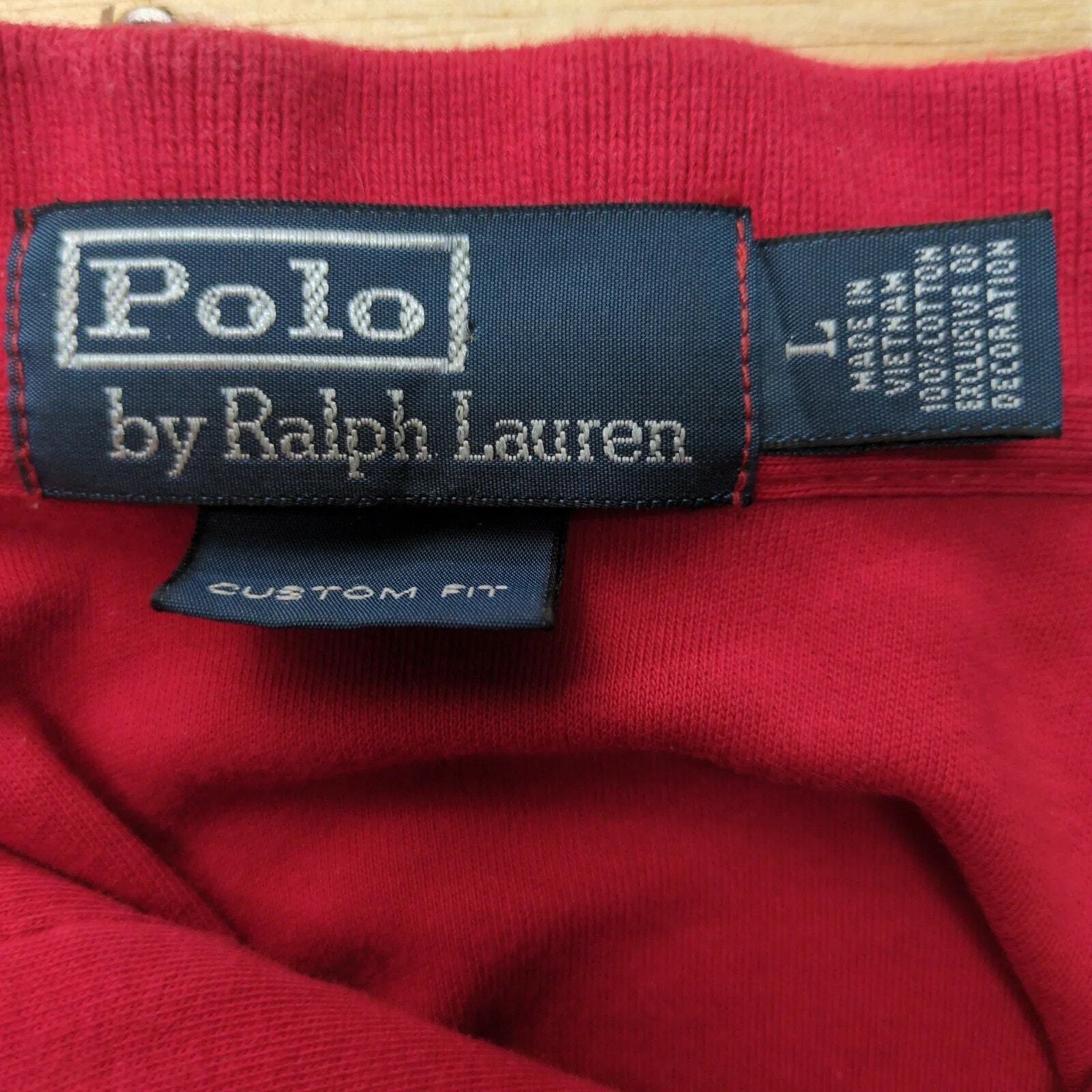 - Vtg Polo by Ralph Lauren Men's L Custom Fit Red Shirt Navy Pony Logo Y2K Preppy