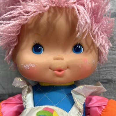 - Vtg Rainbow Brite Baby Doll blue & yellow body with pink shorts with star 1983
