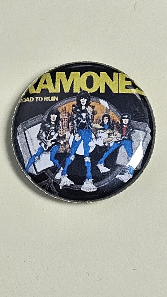 - Vtg Ramones Punk Rock Pin Band Button Road To Ruin Album Art Badge Rock Pinback