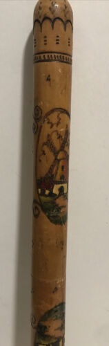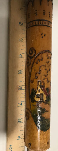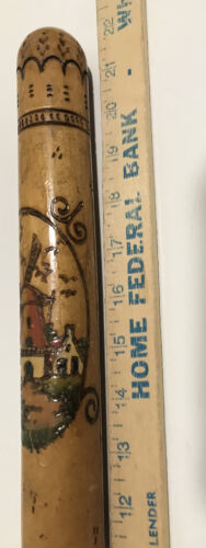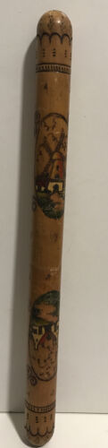 - Vtg Rare Solid Wood Engraved Roller Original Tube Message 20” Long Mill House