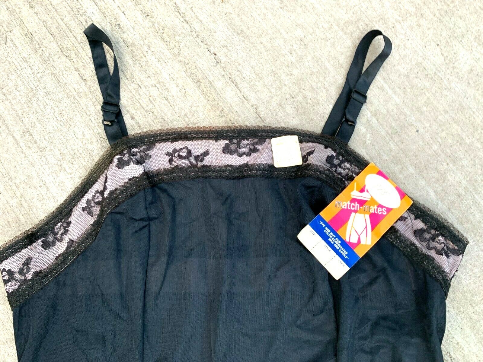 VTG Womens S 60s Teddy Slip SILKY Black Nylon LACE Hanky Hem NWT Match-Mates brand, though it is new with tags, I noticed a tiny run on front side just under bust, and a few tiny holes.