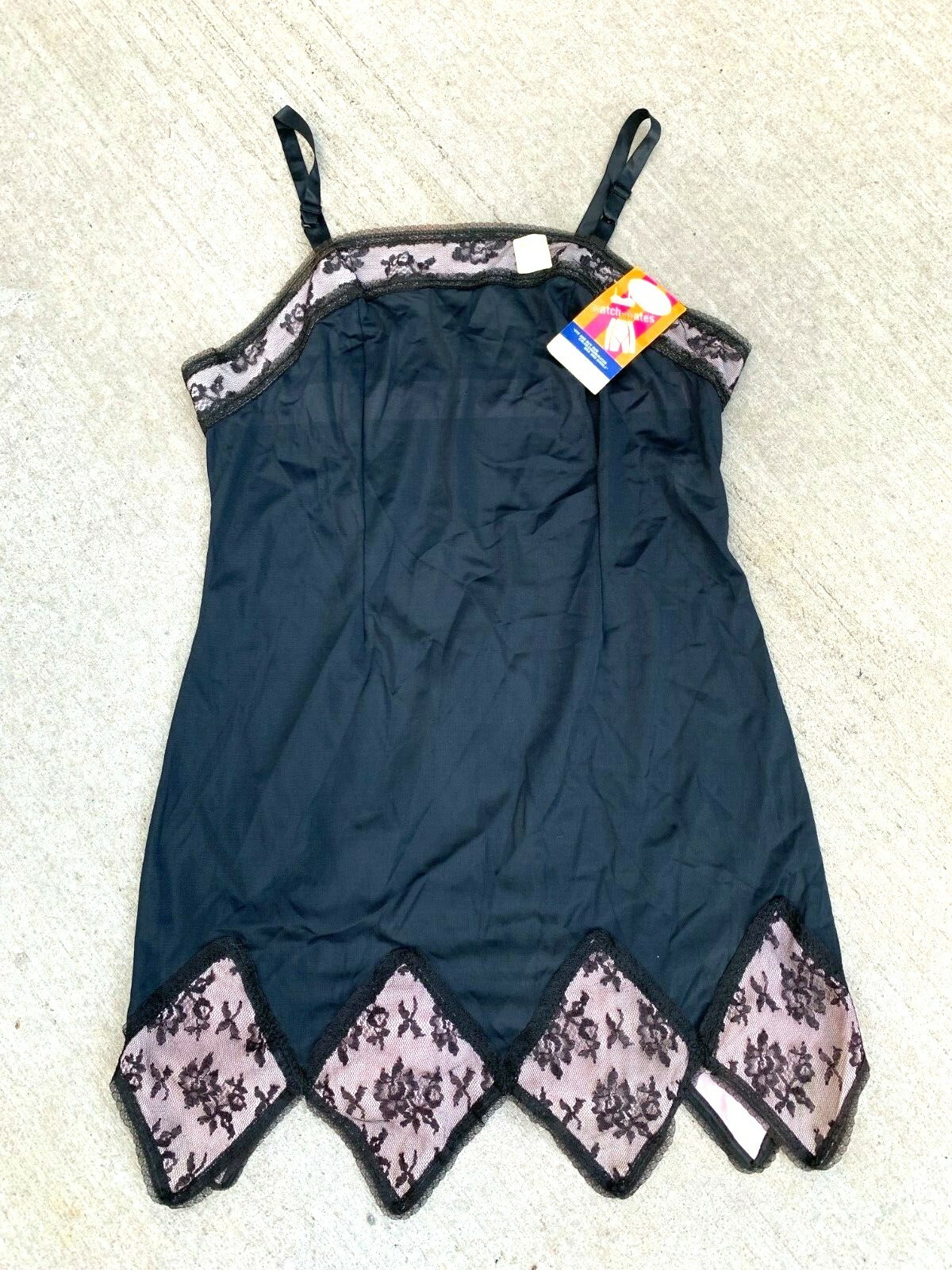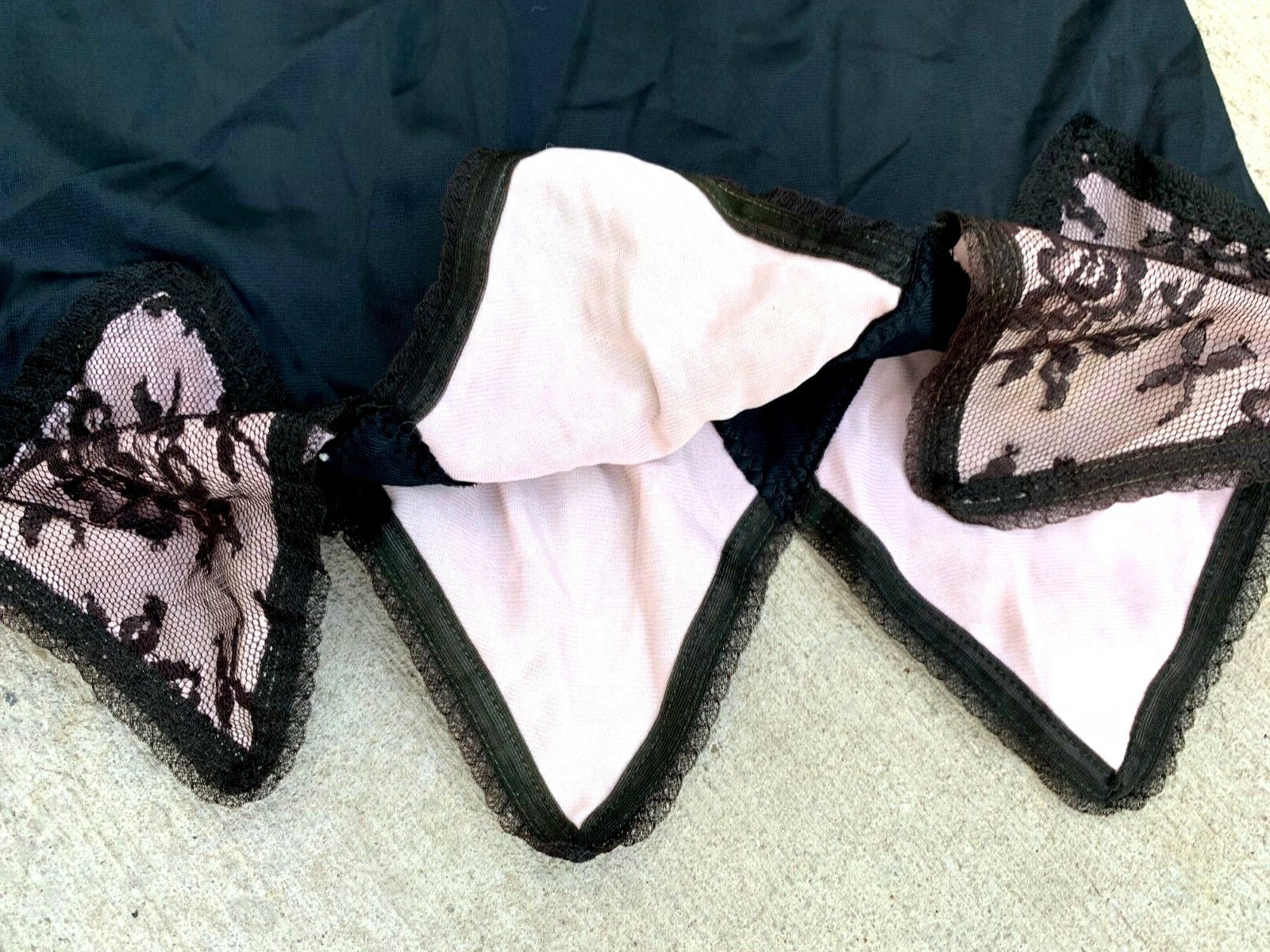 - VTG Retro S 60s Teddy Slip SILKY Black Nylon LACE Hanky Hem NWT Match-mates
