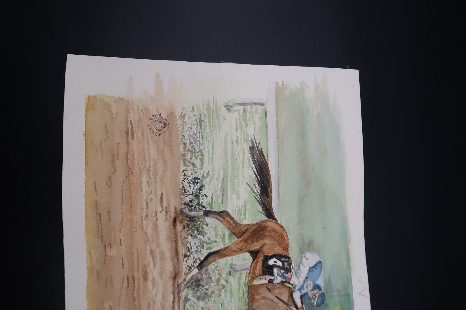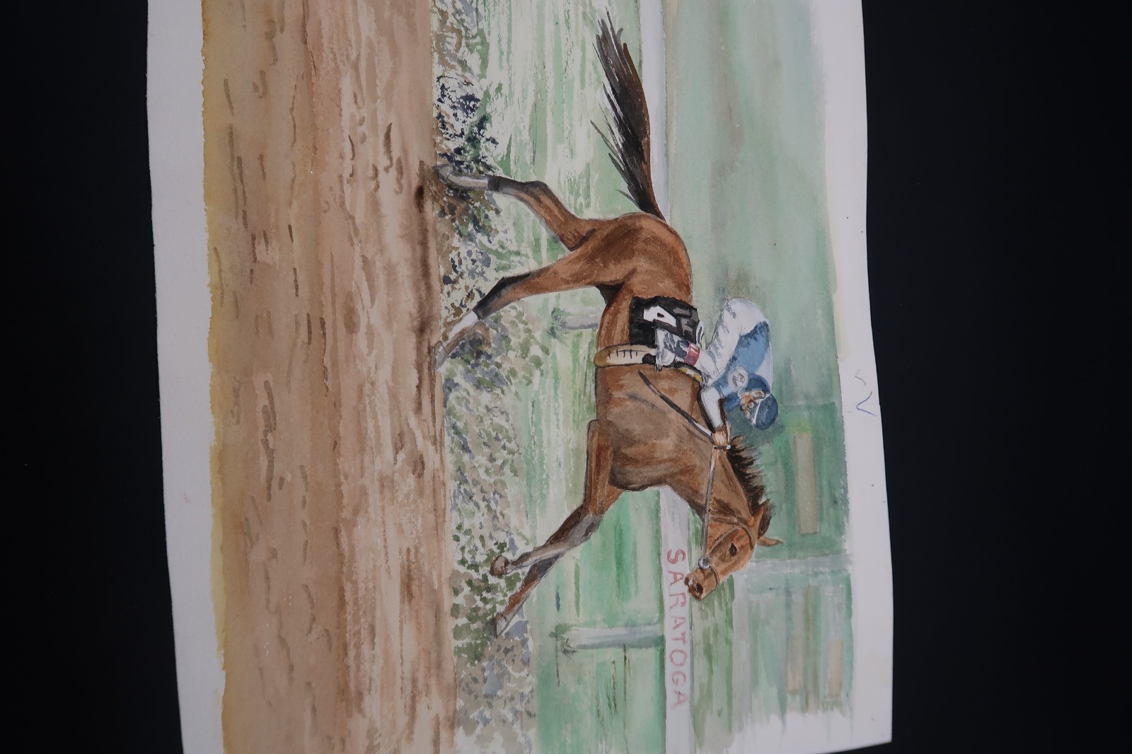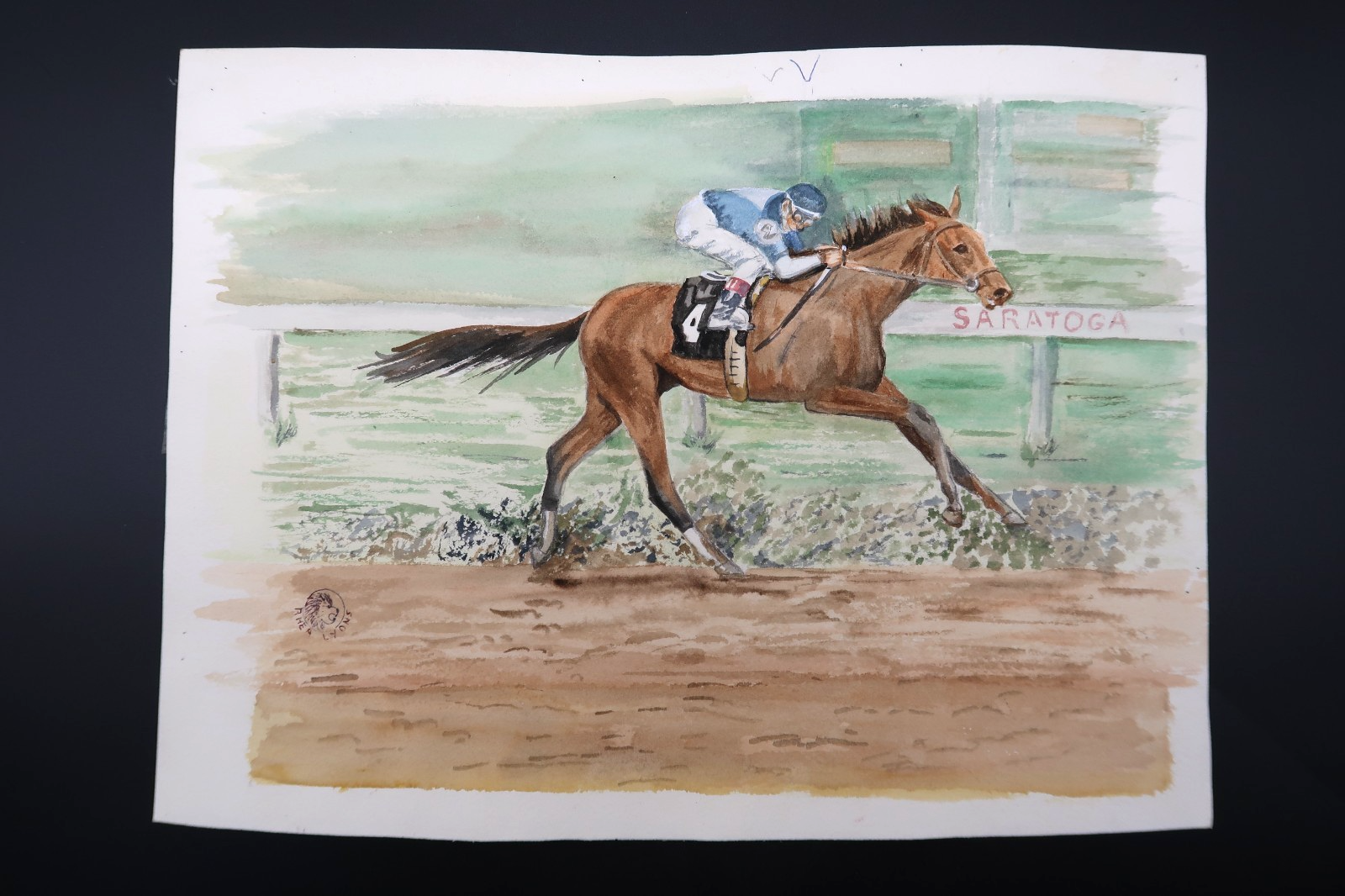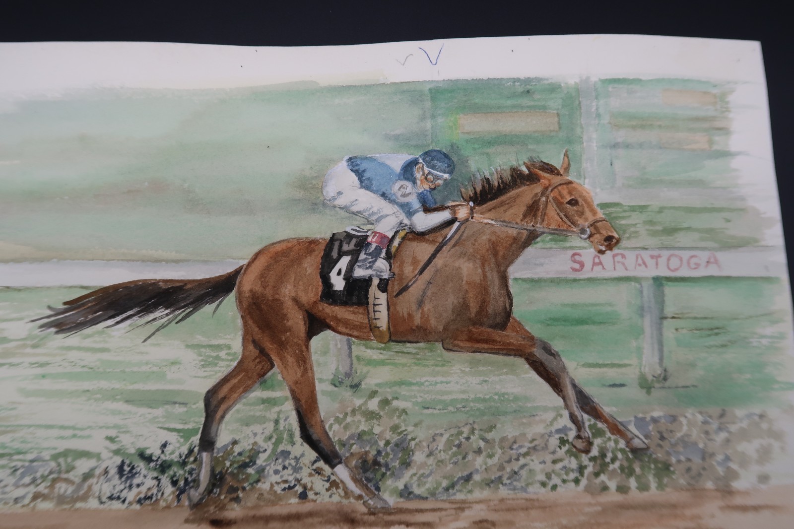 - Vtg Rhea Lyons Watercolor Painting Saratoga Race Course Horse Racing Scene Nice