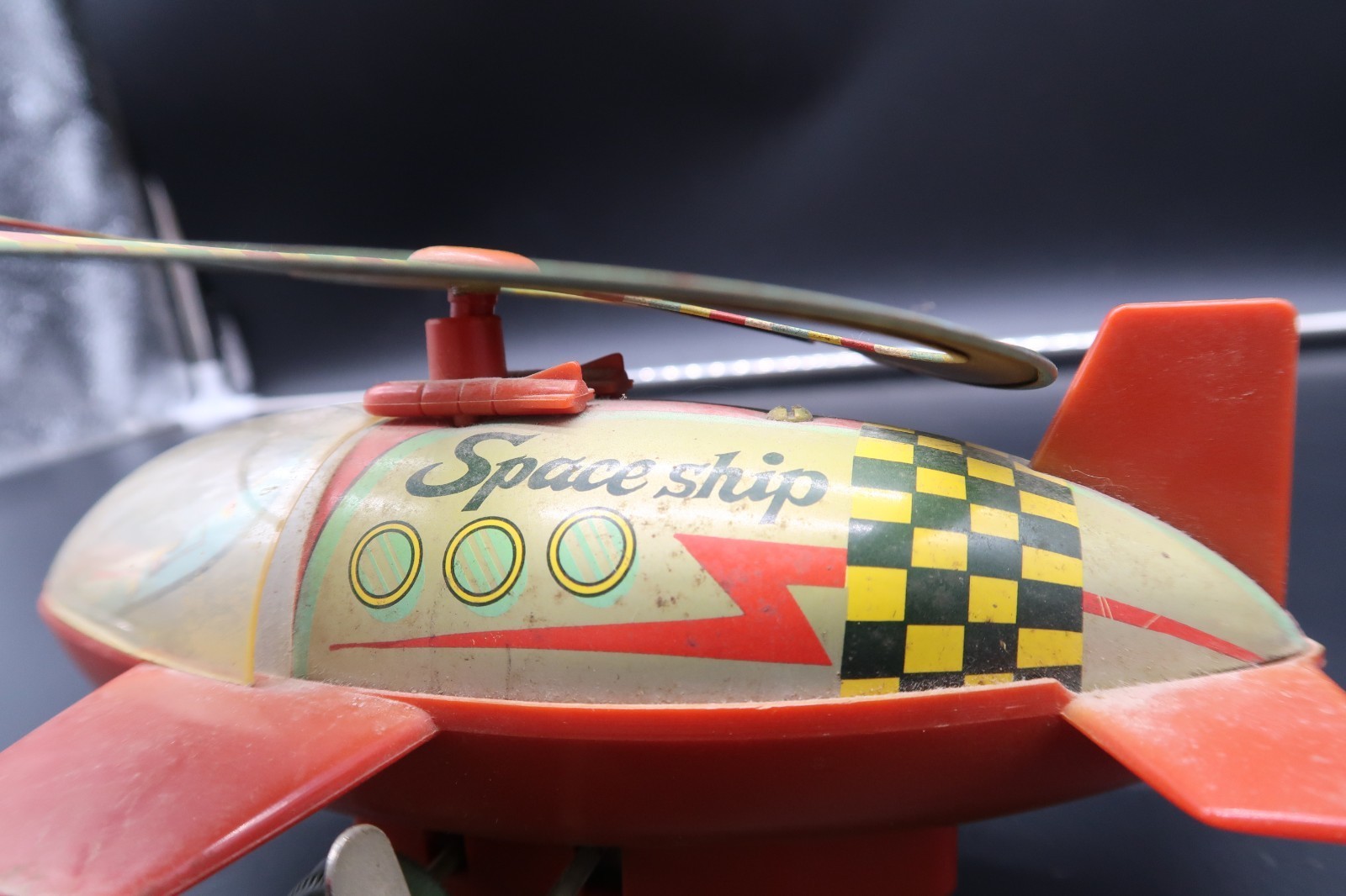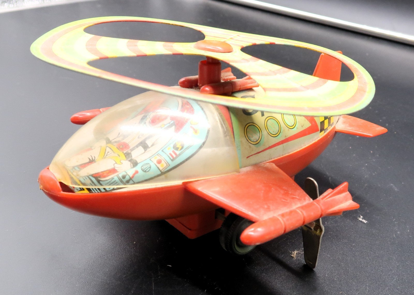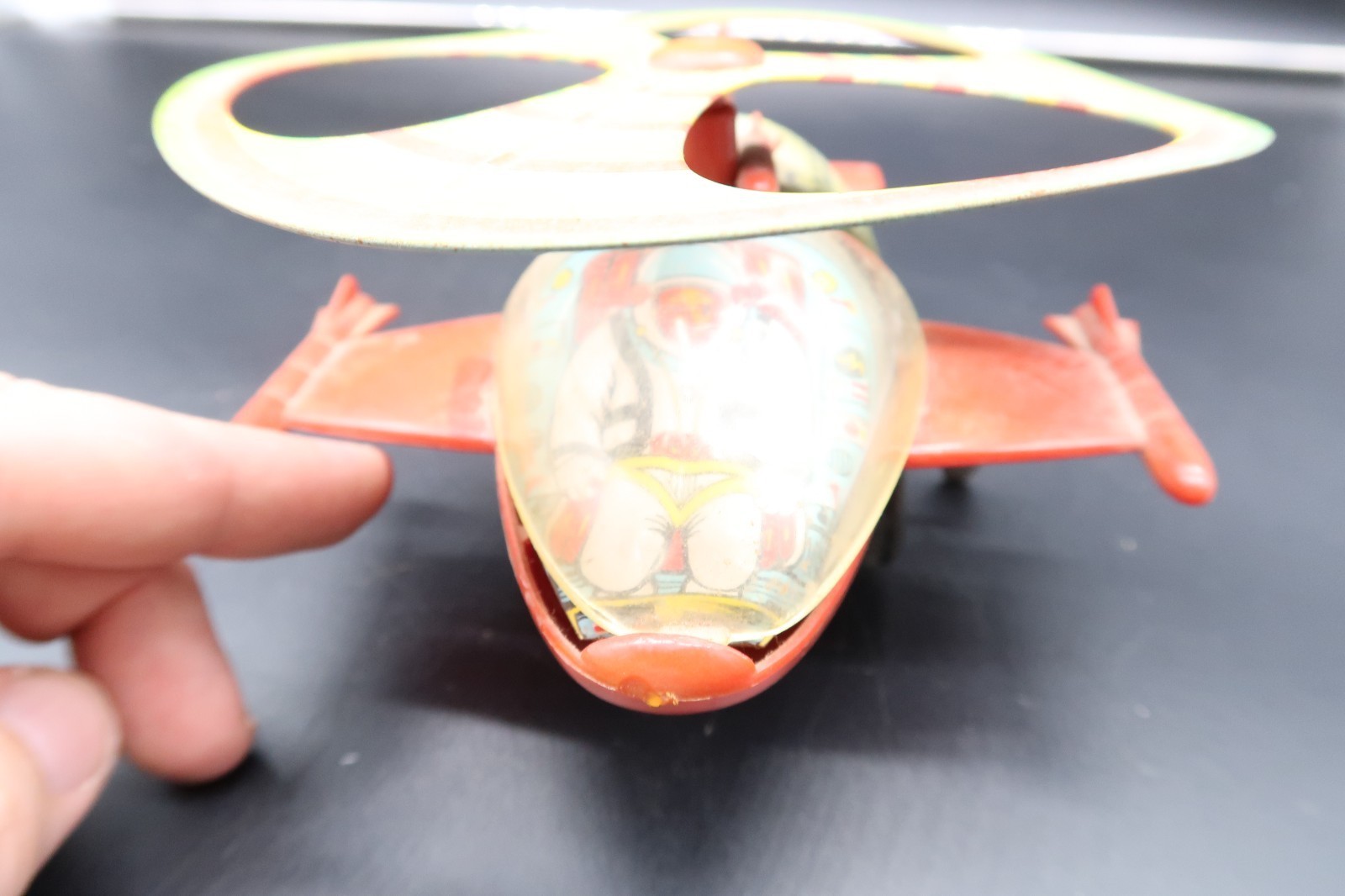 - Vtg Russ Berrie Tin Litho Wind Up Spaceship Helicopter Toy No 971 Works W/ Key