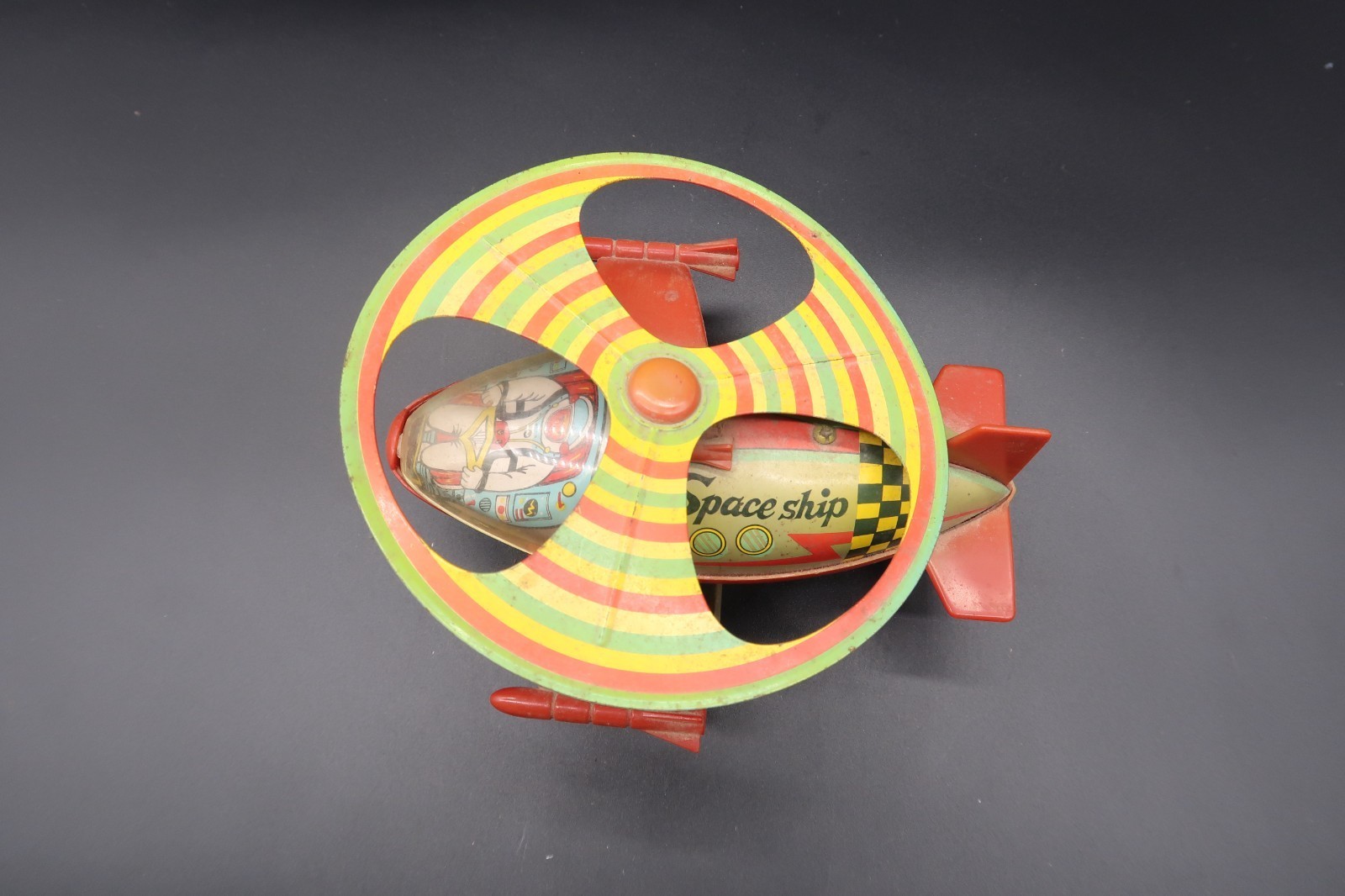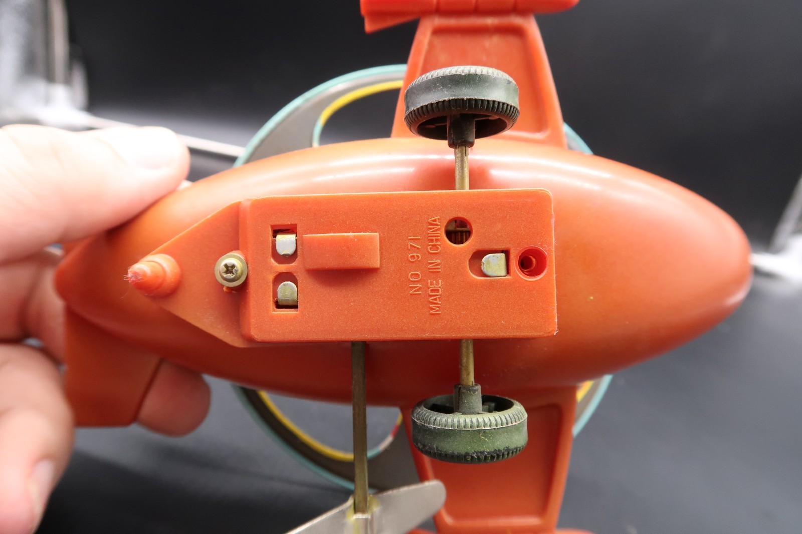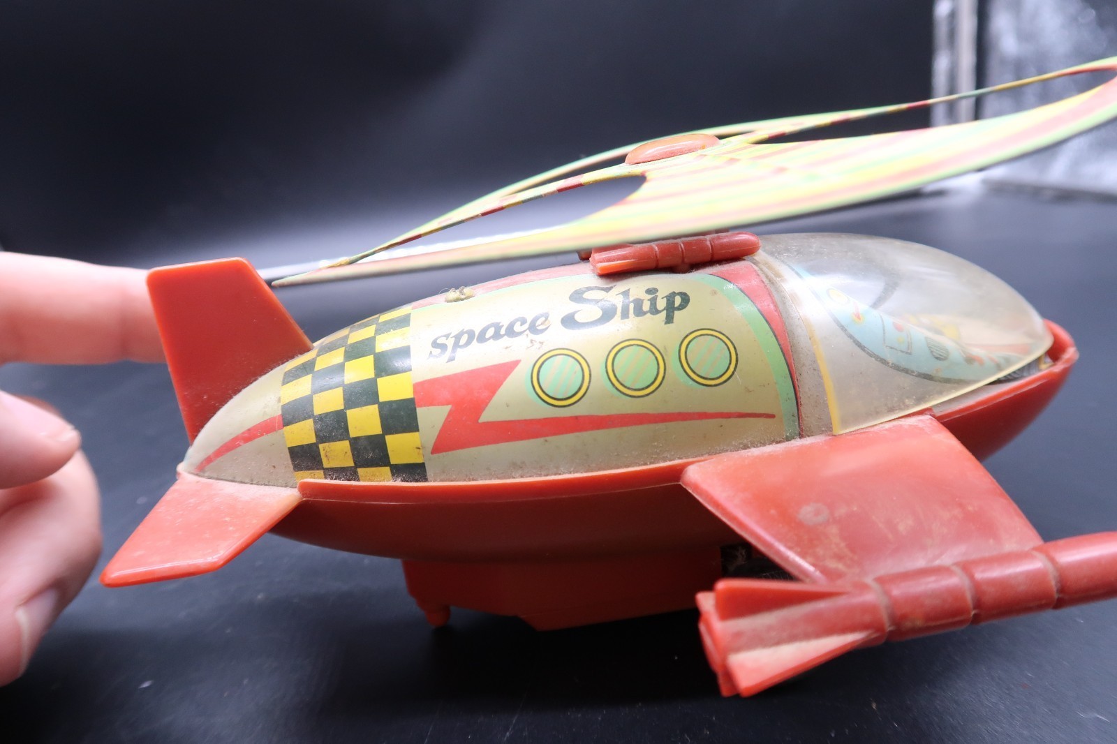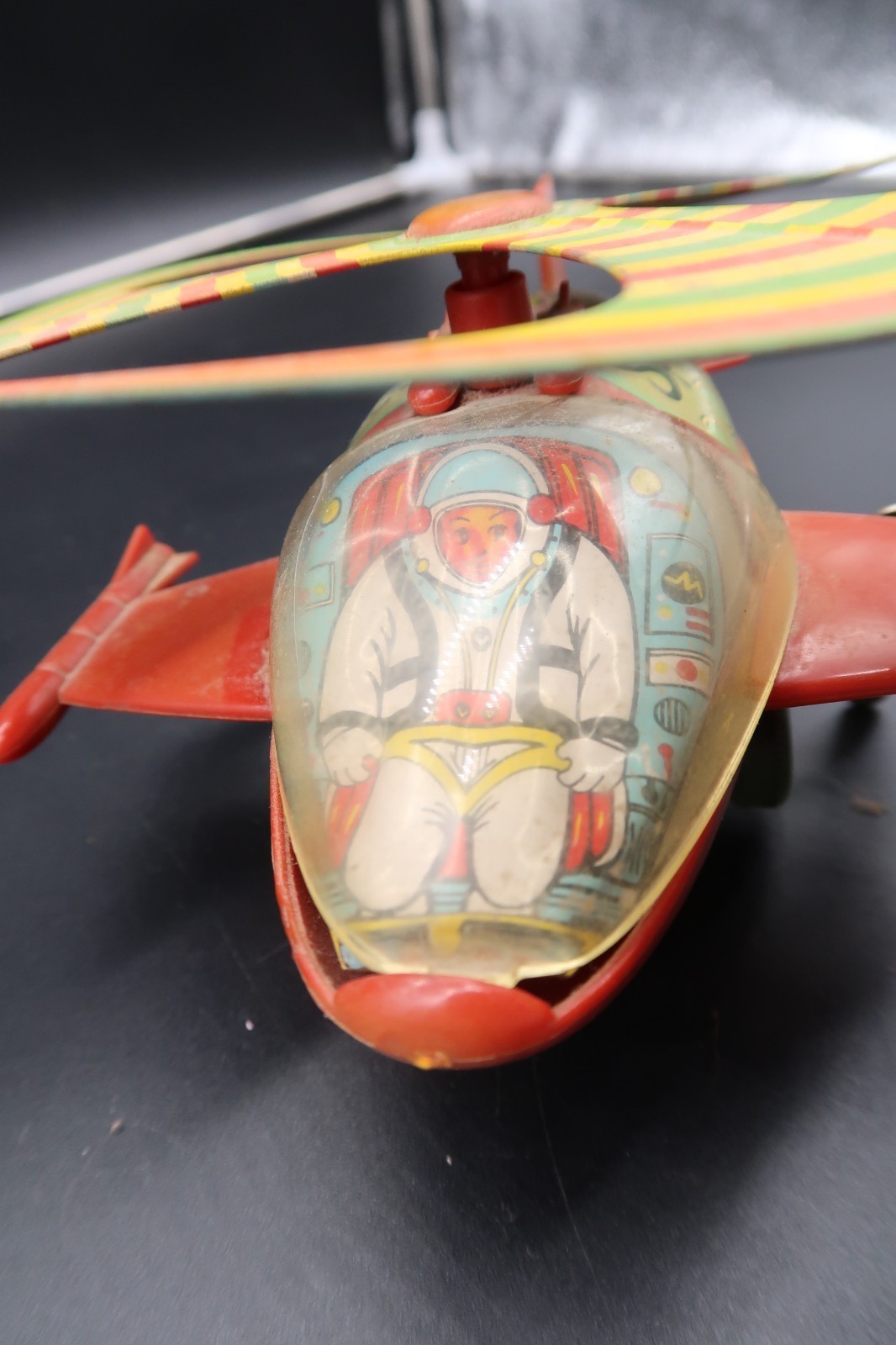 - Vtg Russ Berrie Tin Litho Wind Up Spaceship Helicopter Toy No 971 Works W/ Key