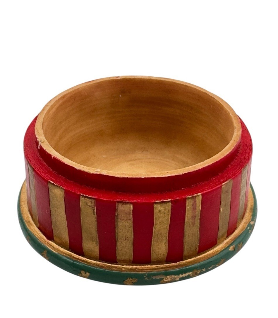 - Vtg Santa Crescent Moon Trinket Box Round Ceramic with Lid 3.75" Merry Christmas
