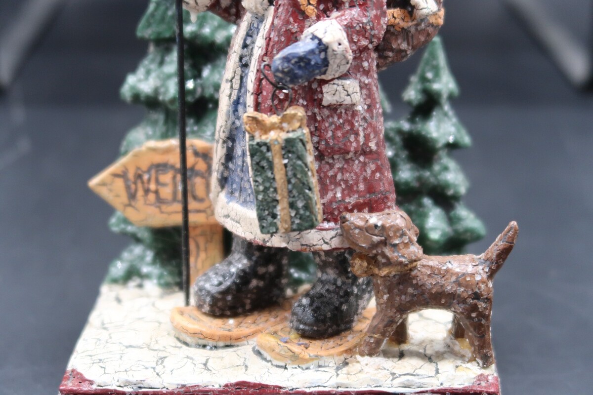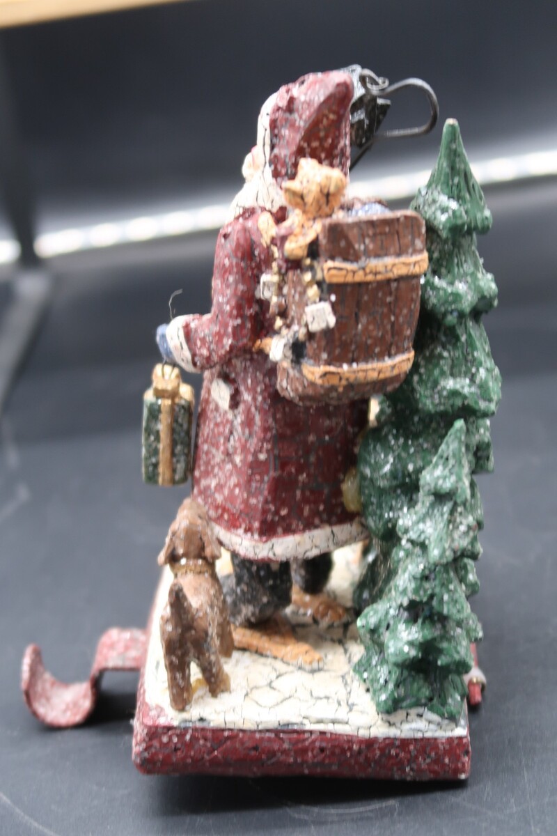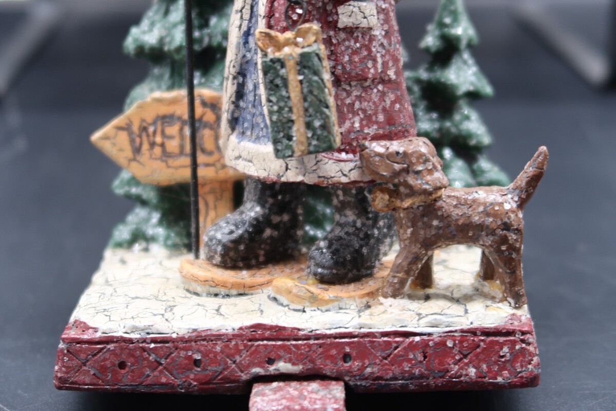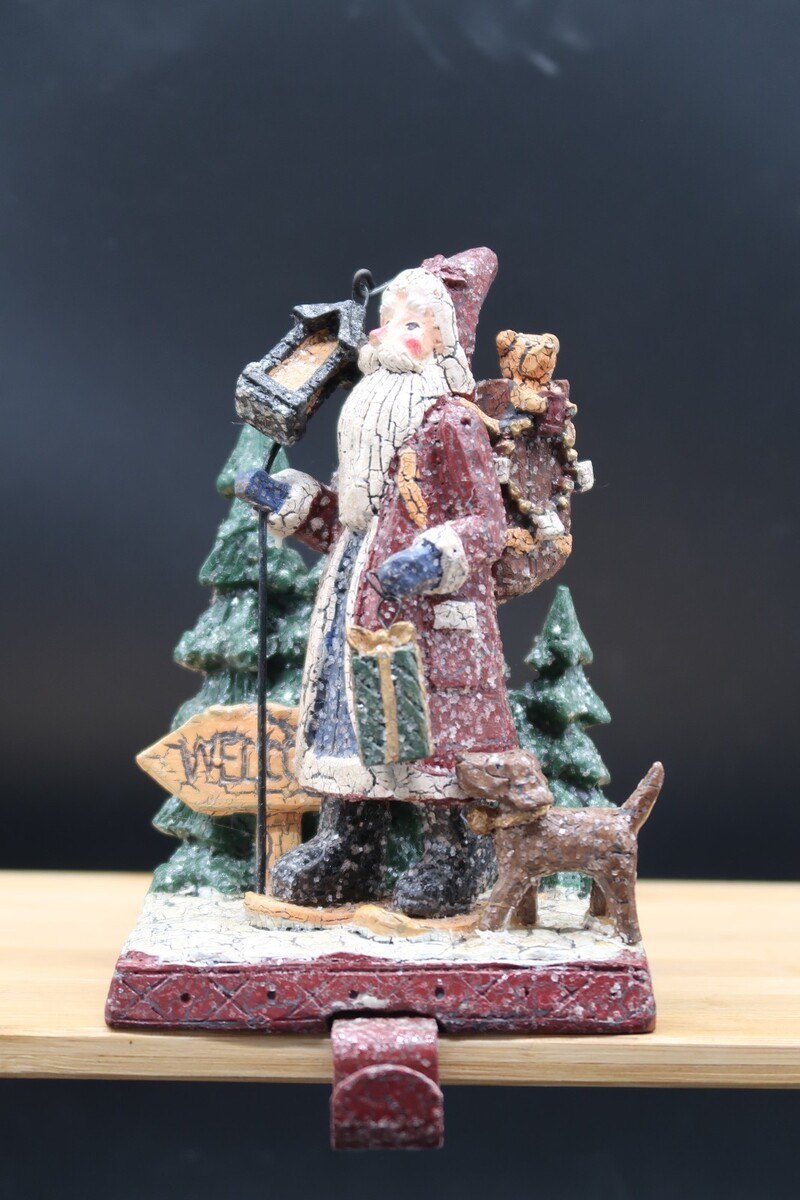 Vtg Santa Stocking Hanger Pere Noel St. Nick Dog Christmas Winter Fireplace Gift