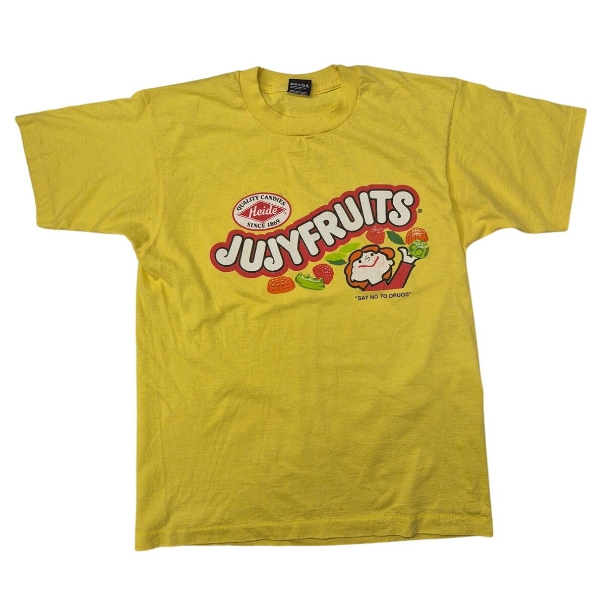 VTG Screen Stars Single Stitch JUJYFRUITS "SAY NO TO DRUGS" Yellow T-shirt -Sz L