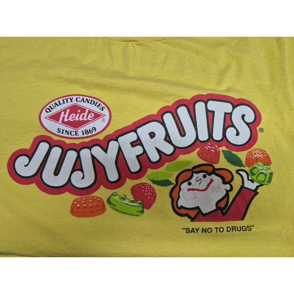 - VTG Screen Stars Single Stitch JUJYFRUITS "SAY NO TO DRUGS" Yellow T-shirt -Sz L