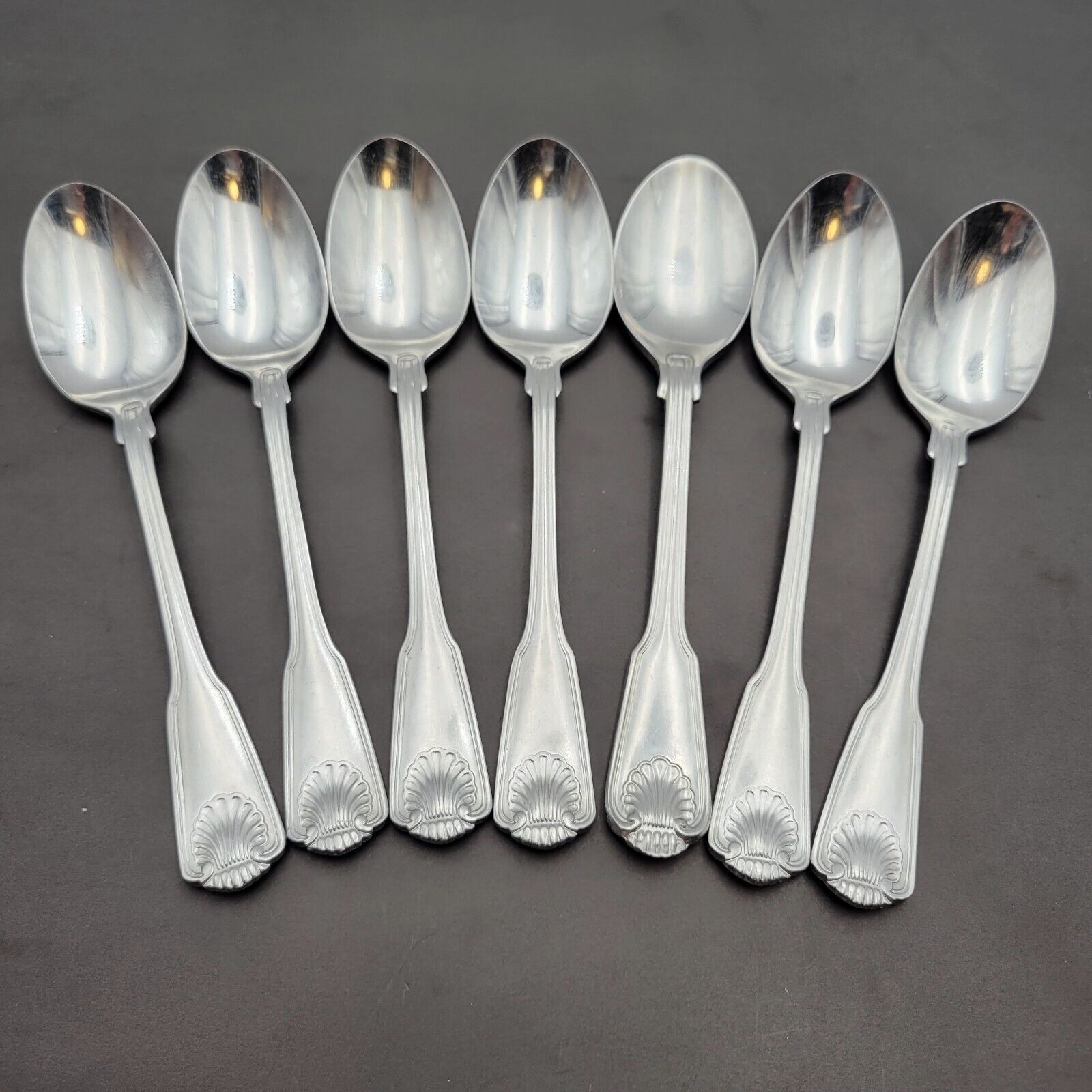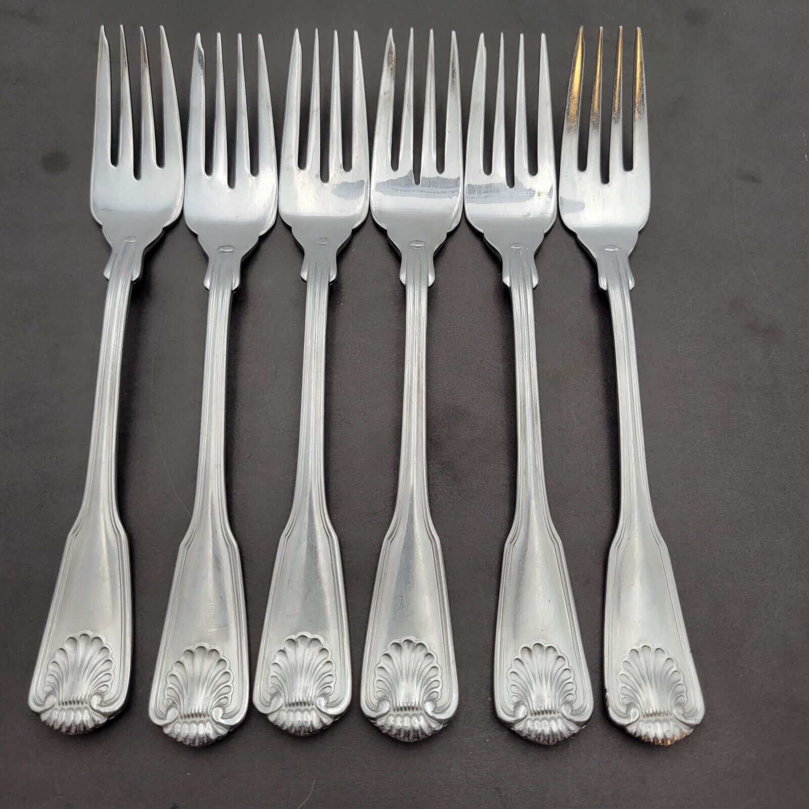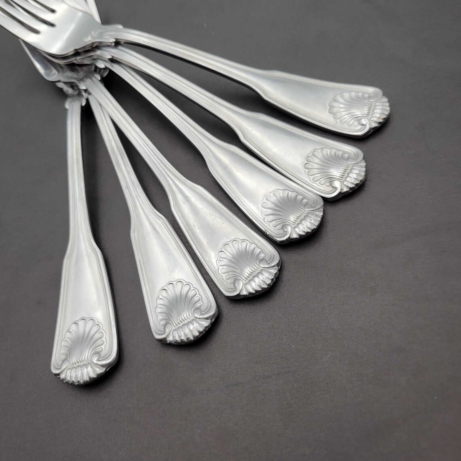This is a vintage set of 23 pieces of Towle Supreme Cutlery. The set includes knives, forks, and spoons, all made of stainless steel and featuring handles made of the same material. The design is called English Shell and the pieces are silver-plated.
