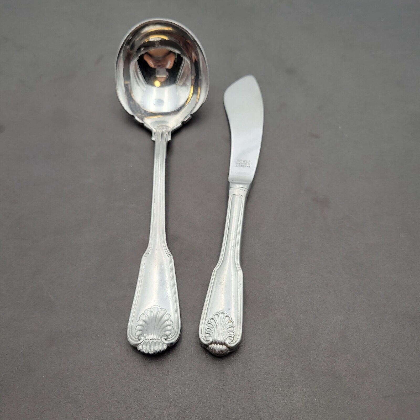 - Vtg Set 23 Pcs Supreme Cutlery Towle Silver Plate ENGLISH SHELL