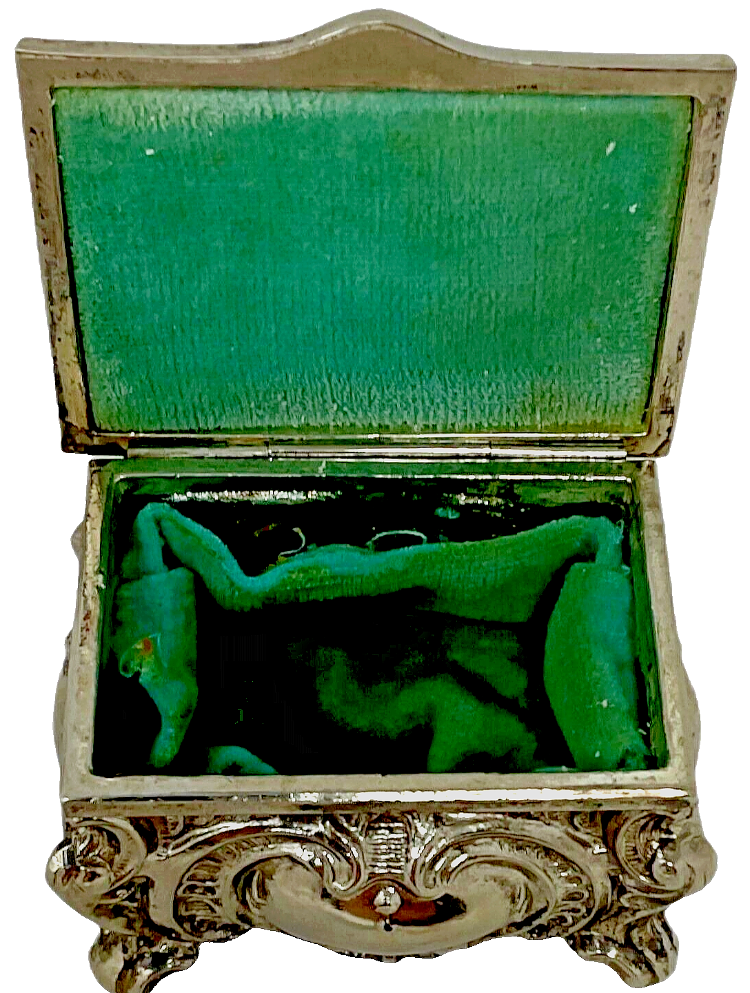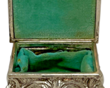 - Vtg Silver Tone Footed Trinket Box 2.5" | Hinged Jewelry Case Green Lining Japan