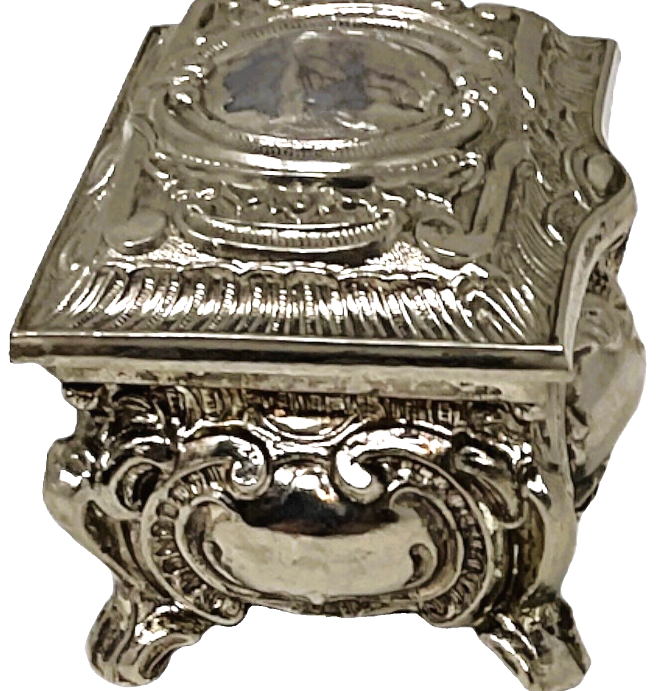 Vintage Silver Tone Footed Jewelry/Trinket Box with Hinge Top 2.5" x 1.25".
