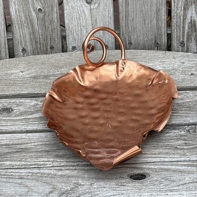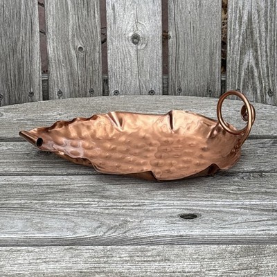 - Vtg Solid Copper Leaf Tray Hammered Crimped Handmade in USA Gregorian Bowl Plate