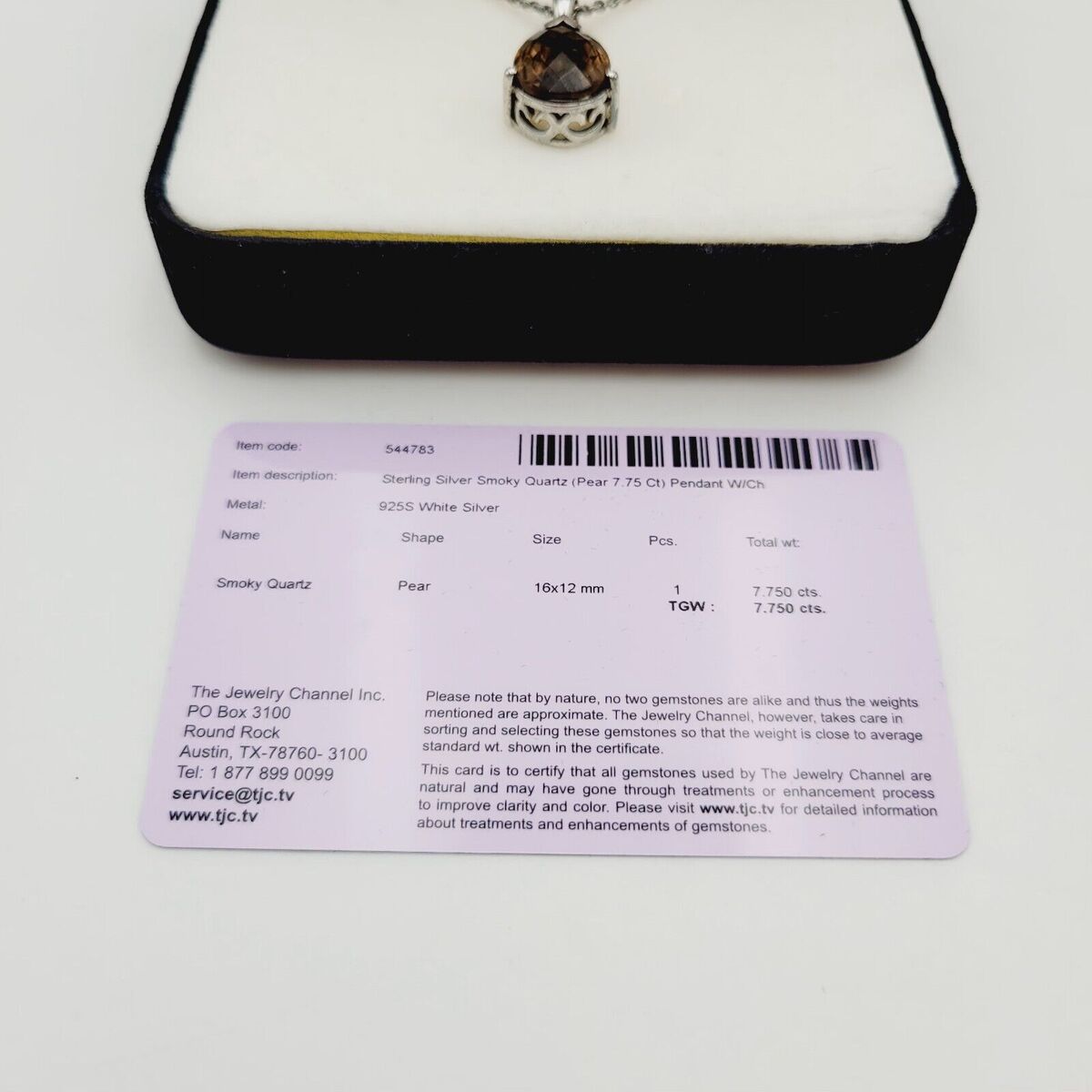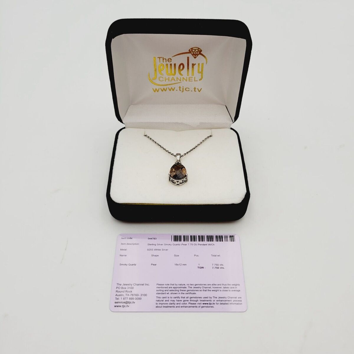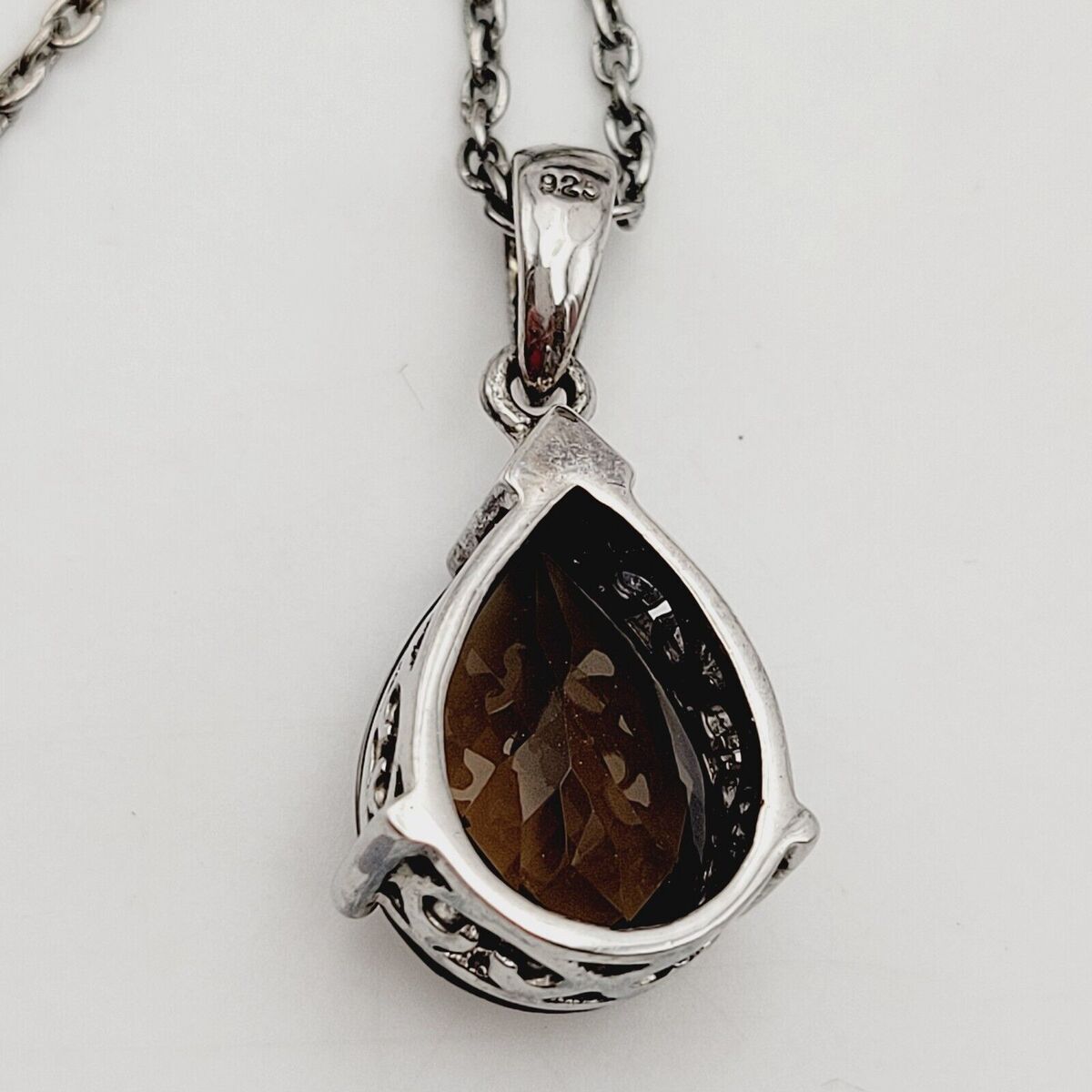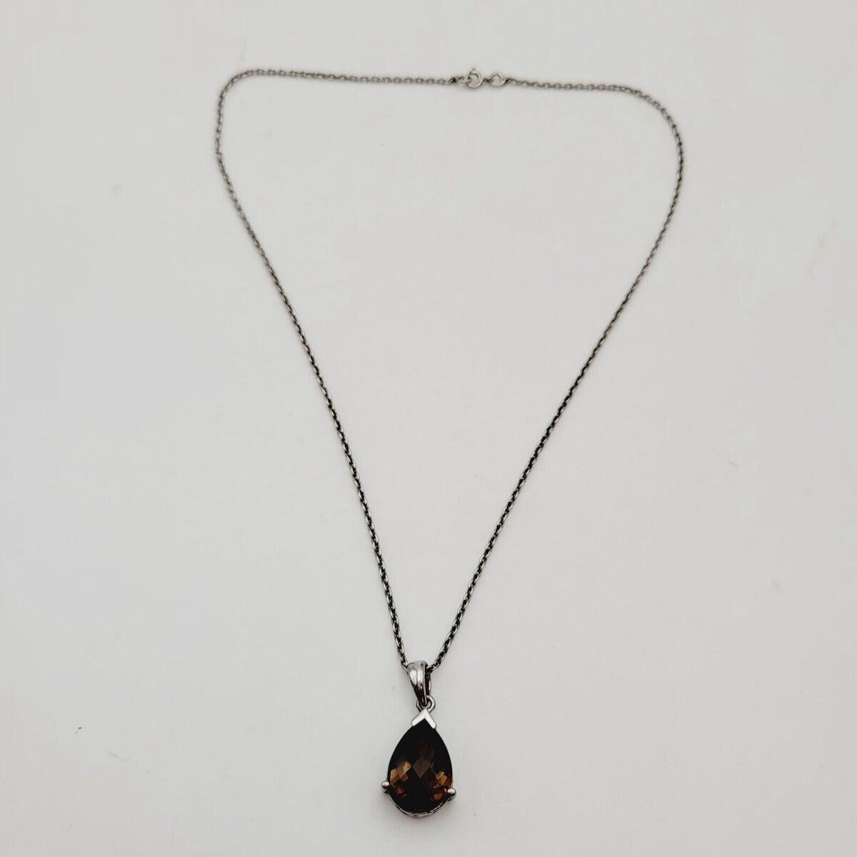 - Vtg Sterling Silver Smoky Quartz (Pear 7.75 Ct) Pendant W/Chain Necklace