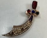 - Vtg Sterling Silver Vermeil Jeweled Rhinestone Scimitar Sword 3” Brooch Pin 19g