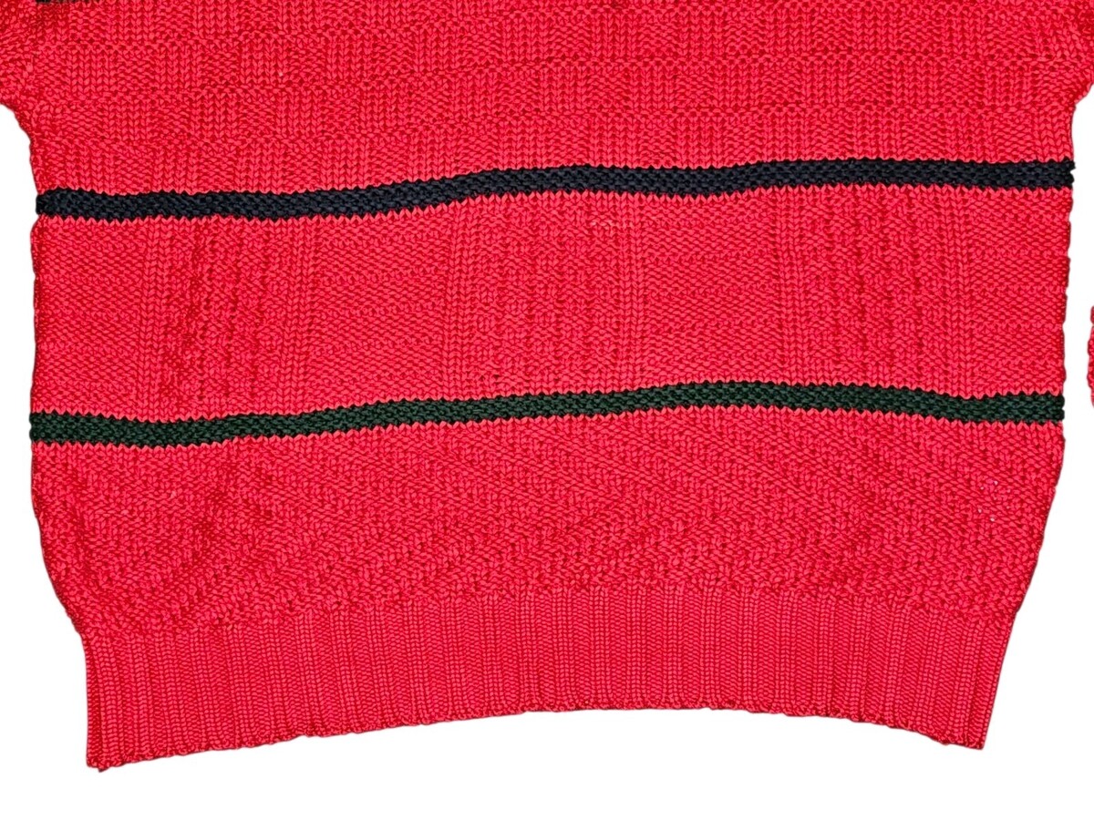 - Vtg Tommy Hilfiger Hand Knit chunky cotton Sweater Red Striped Men Sz Medium