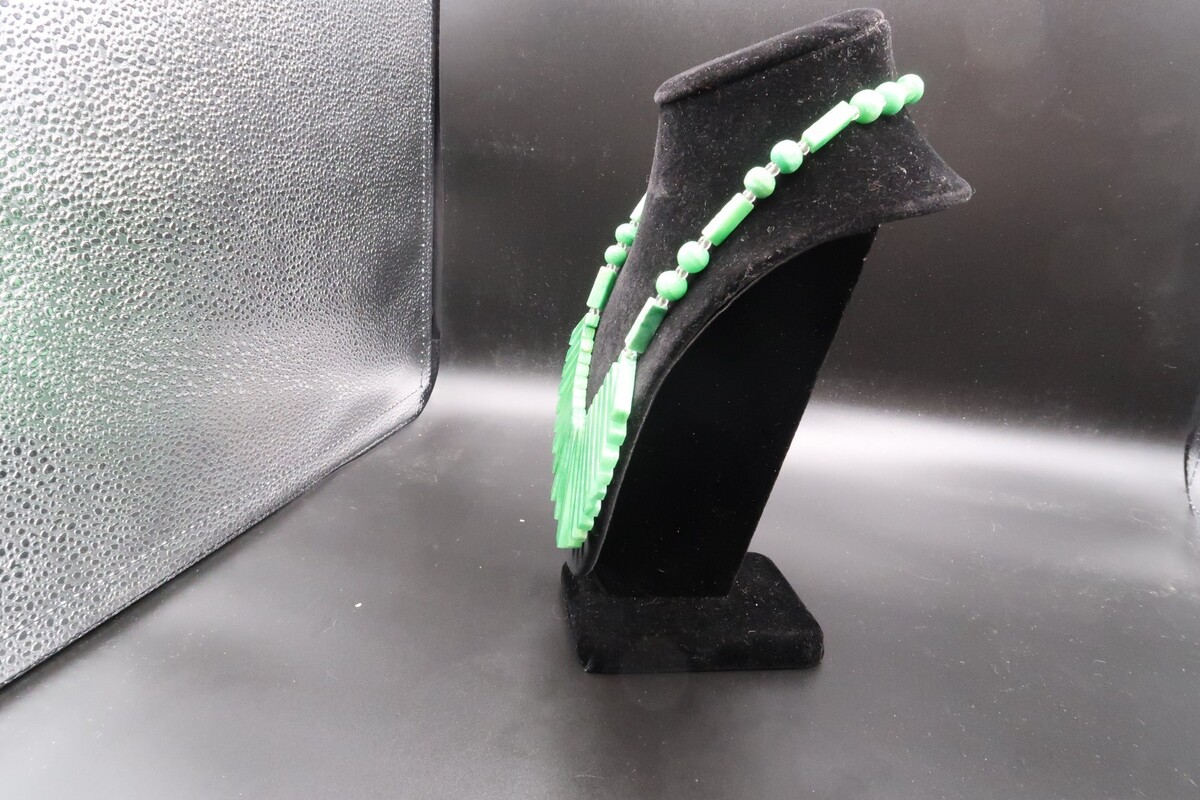 - Vtg Turquoise Colored Green Stone Beads Bib Collar Necklace 19" Screw Clasp