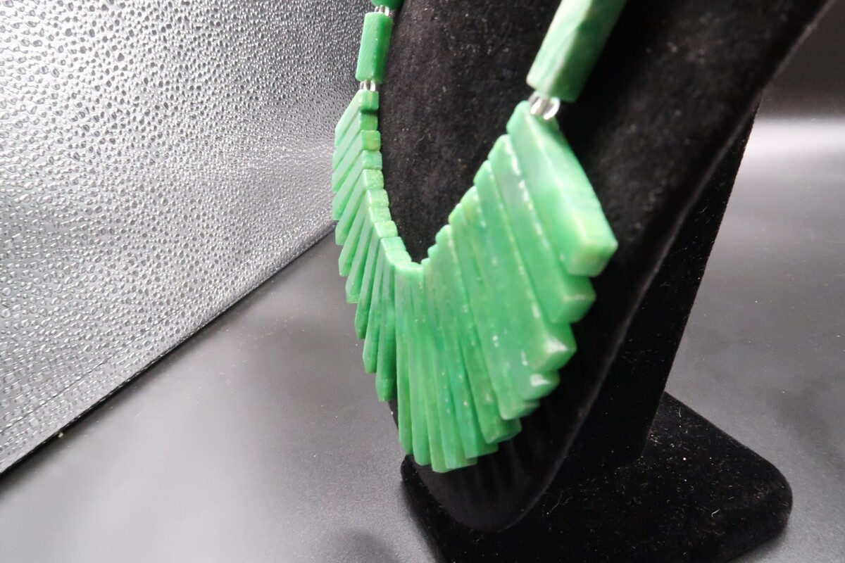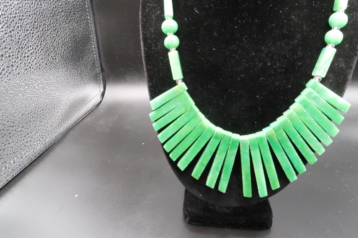 Vtg Turquoise Colored Green Stone Beads Bib Collar Necklace 19" Screw Clasp