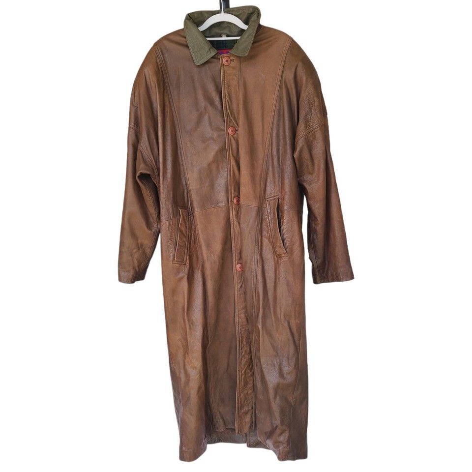 - Vtg Verducci Womens Large Full Length Brown Leather Coat Collared Lined Jacket