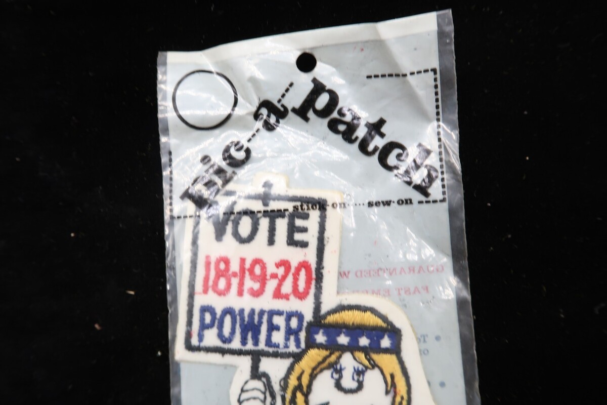 Vtg VOTE 18 19 20 POWER Pic A Patch Stick or Sew NOS Rare HTF Politics History