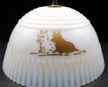 Vtg White Opalescent Milk Glass Lampshade w/ Gold Colored Silhouette Dogs