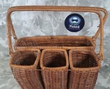 - Vtg Wicker Silverware Caddy Flatware Napkin Holder Organizer Rattan BOHO decor