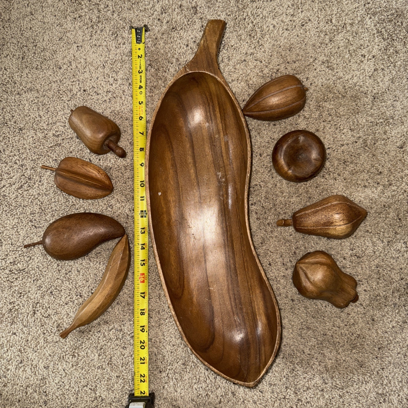 - Vtg Wooden Fruit and Eggplant Shaped Tray Bowl 9 Pieces Mid Century Modern Decor