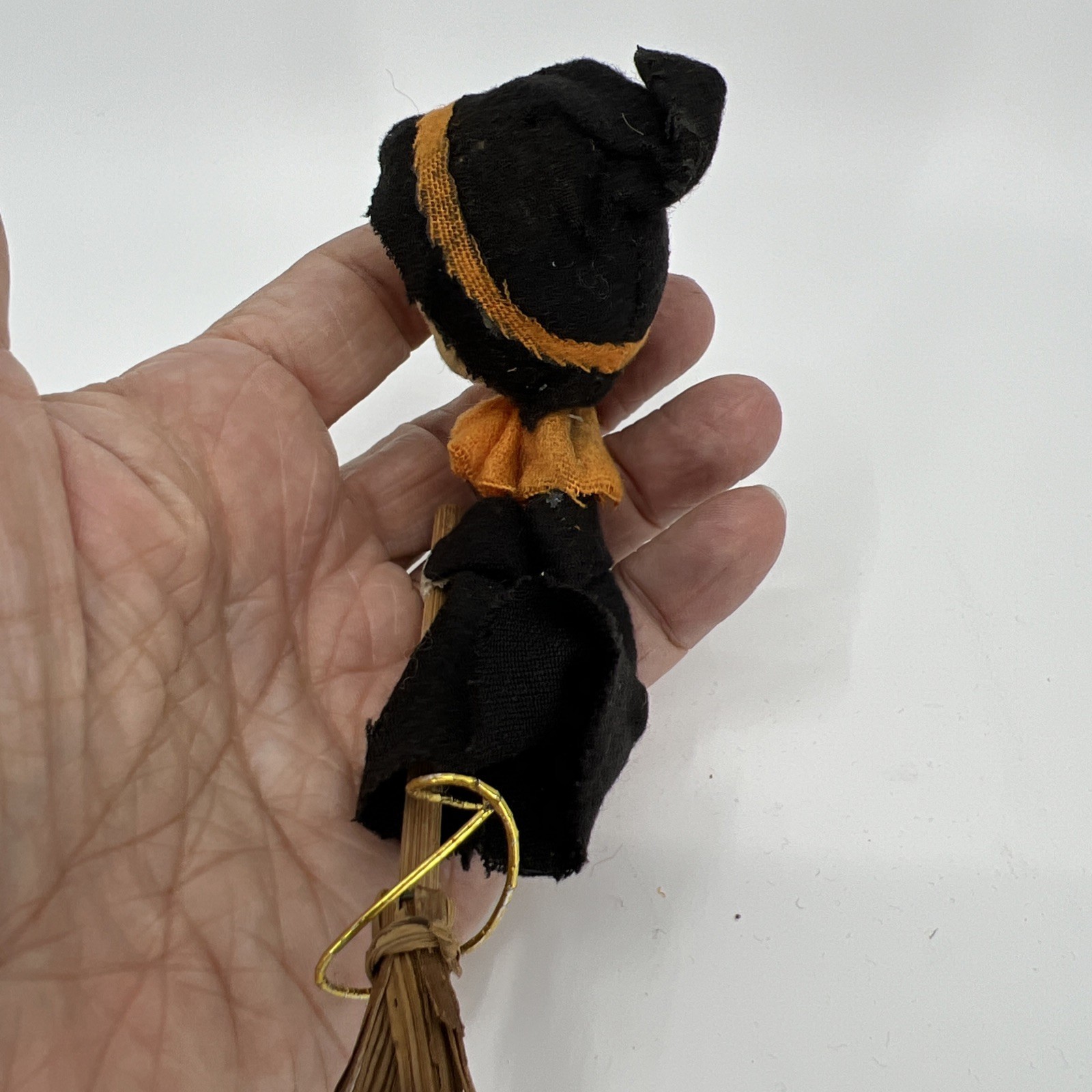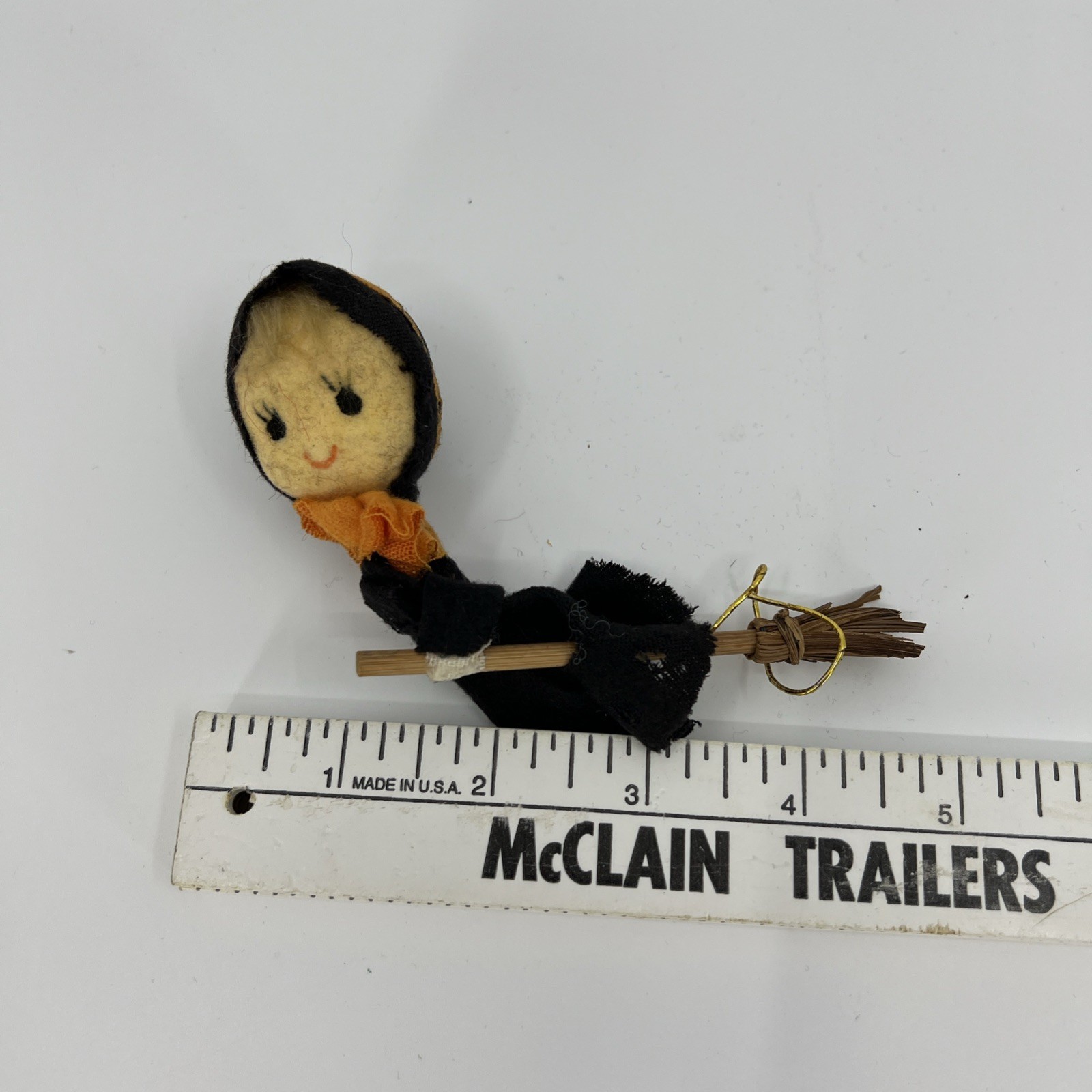 - VTNG ADORABLE HALLOWEEN FLYING PIXIE WITCH ON BROOM FELT FIGURINE MCM