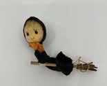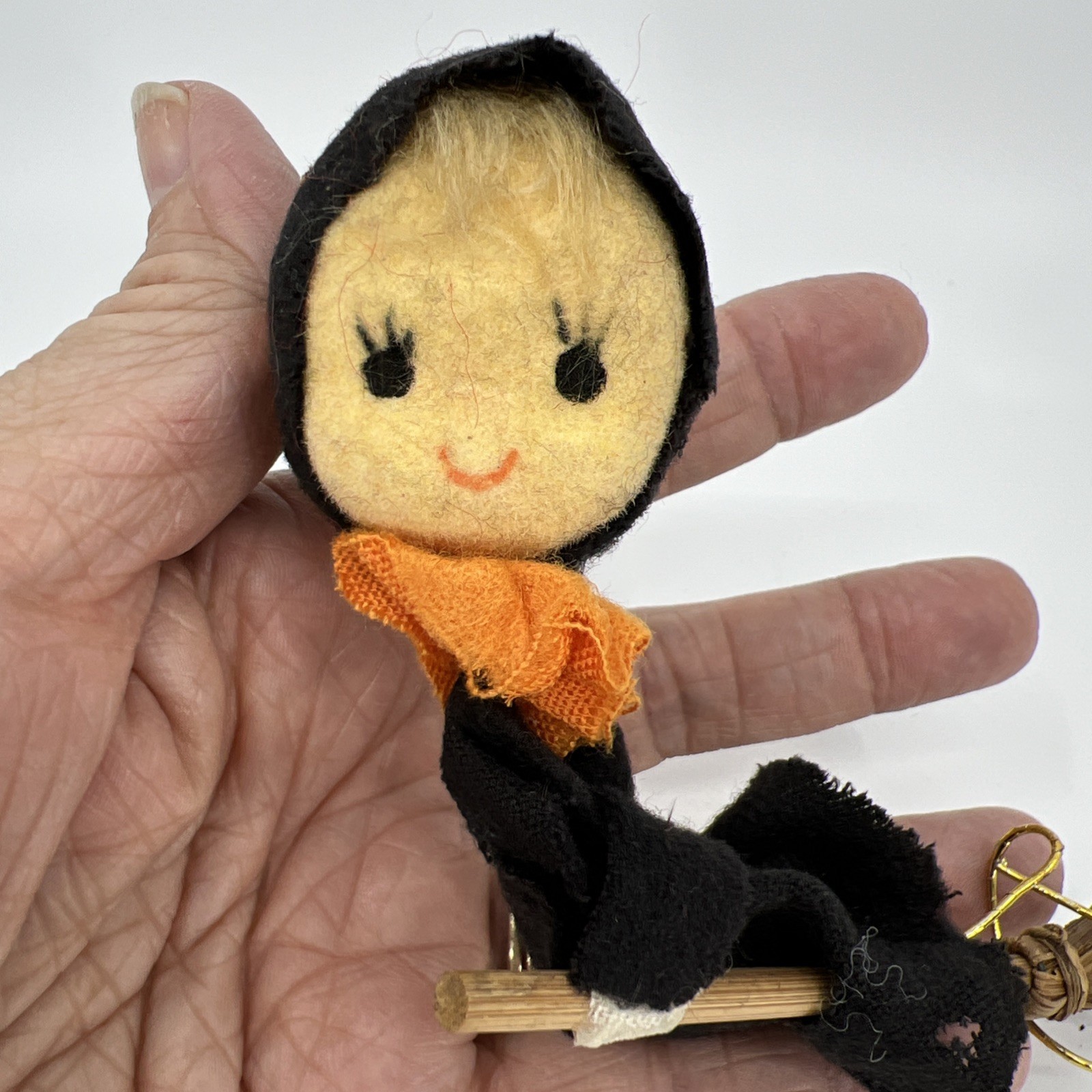 VTNG ADORABLE HALLOWEEN FLYING PIXIE WITCH ON BROOM FELT FIGURINE MCM