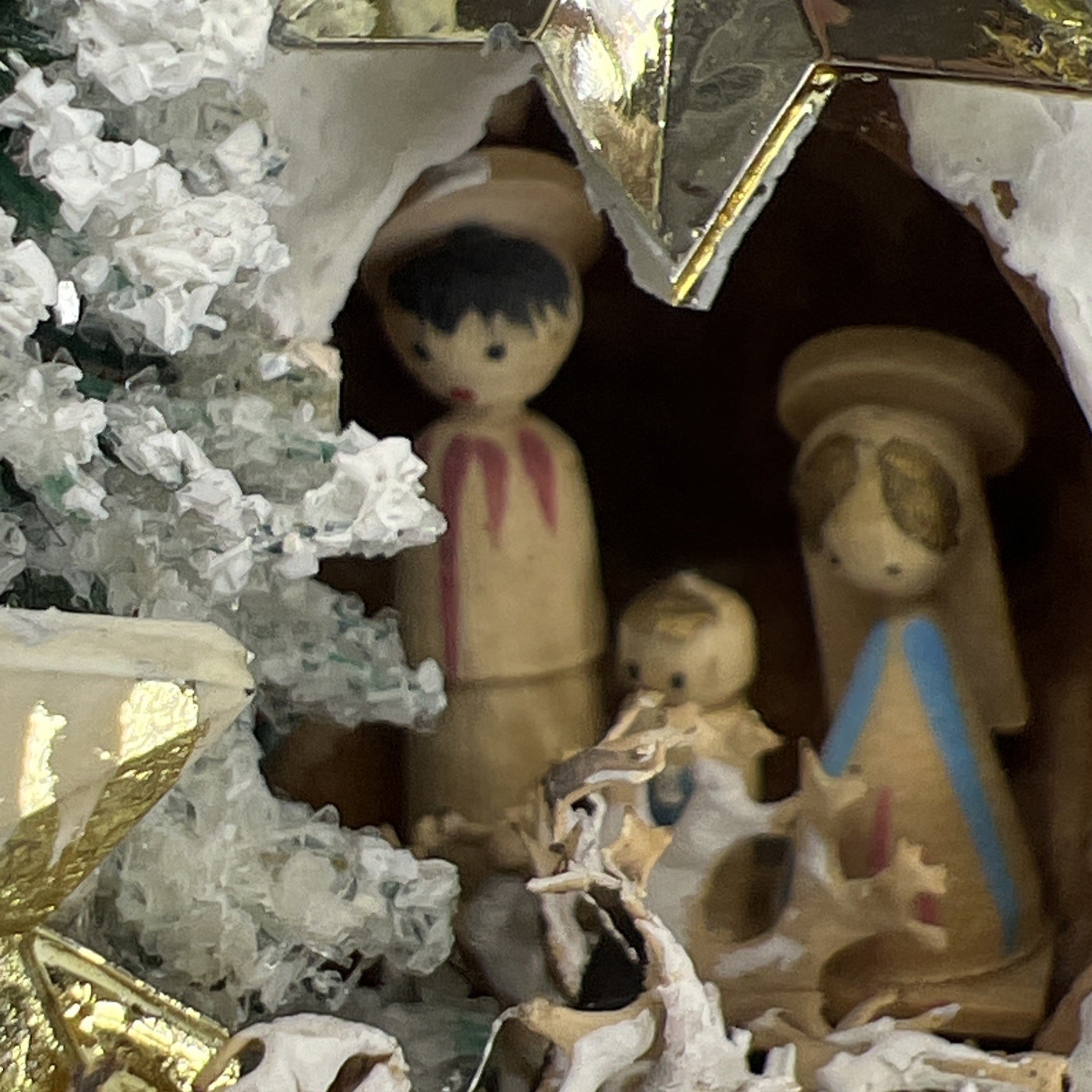 - VTNG FOLK ART MINIATURE Handmade Nativity Creche Diorama in WALNUT SHELL Italy