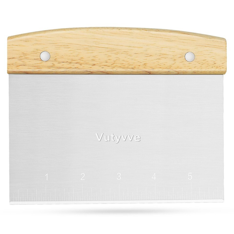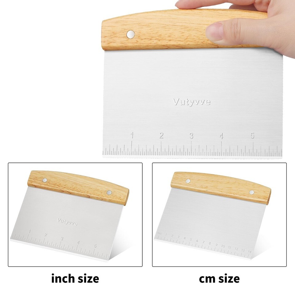 - Vutyvve Dough Scraper Set, Wooden Handle Stainless Steel + 2 Plastic, 3 Pc