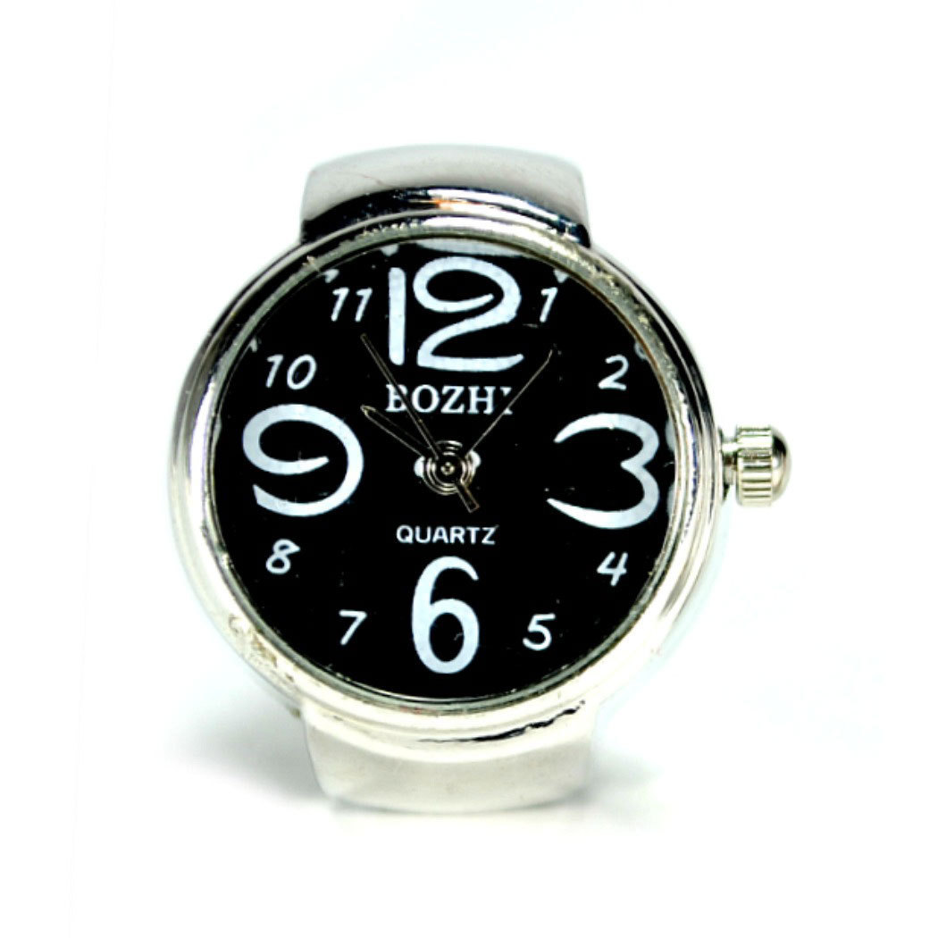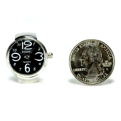 - WATCH RING Finger Stretch Band Chrome Time Jewelry NEW Large Number Black Gift