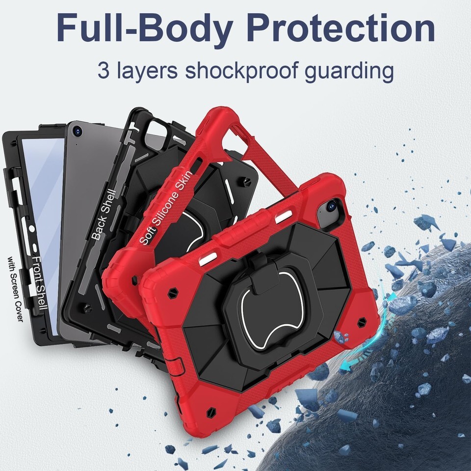 Full-Body Drop Protection - This iPad Air 11 inch M2 case provides 3-layers protection: Front shell with built-in screen protector prevents daily scratches from a rough surface or sharp stuff; Hard back shell stably back up the tablet; Silicone bumper effectively reduce the impact form drop or crack