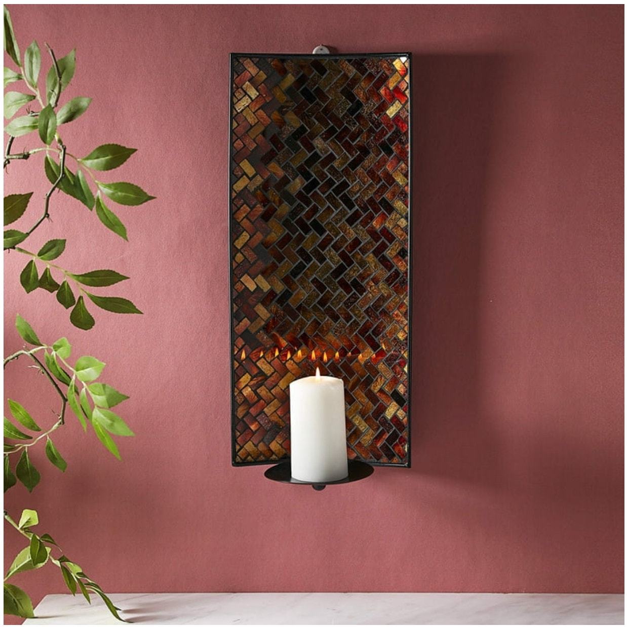- WHOLE HOUSEWARES Vintage Mosaic Glass Candle Holder Decorative Metal Wall Sconce