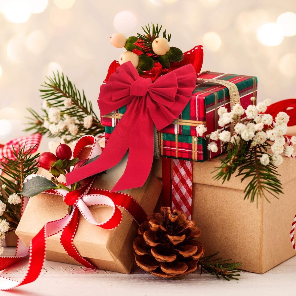 - WILLBOND 6pcs Large Red Velvet Christmas Bows 9.8x17.7in Indoor Holiday Decor