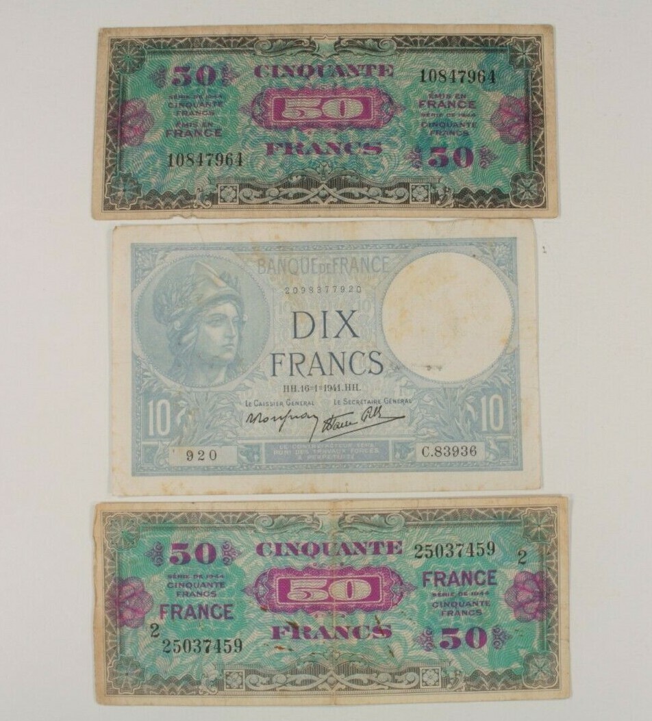 - WW2 France 3-Notes Set 1941-1944 French Francs and Allied Military Currency