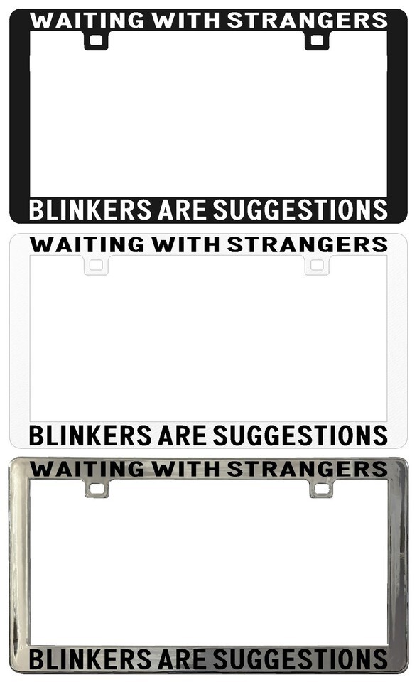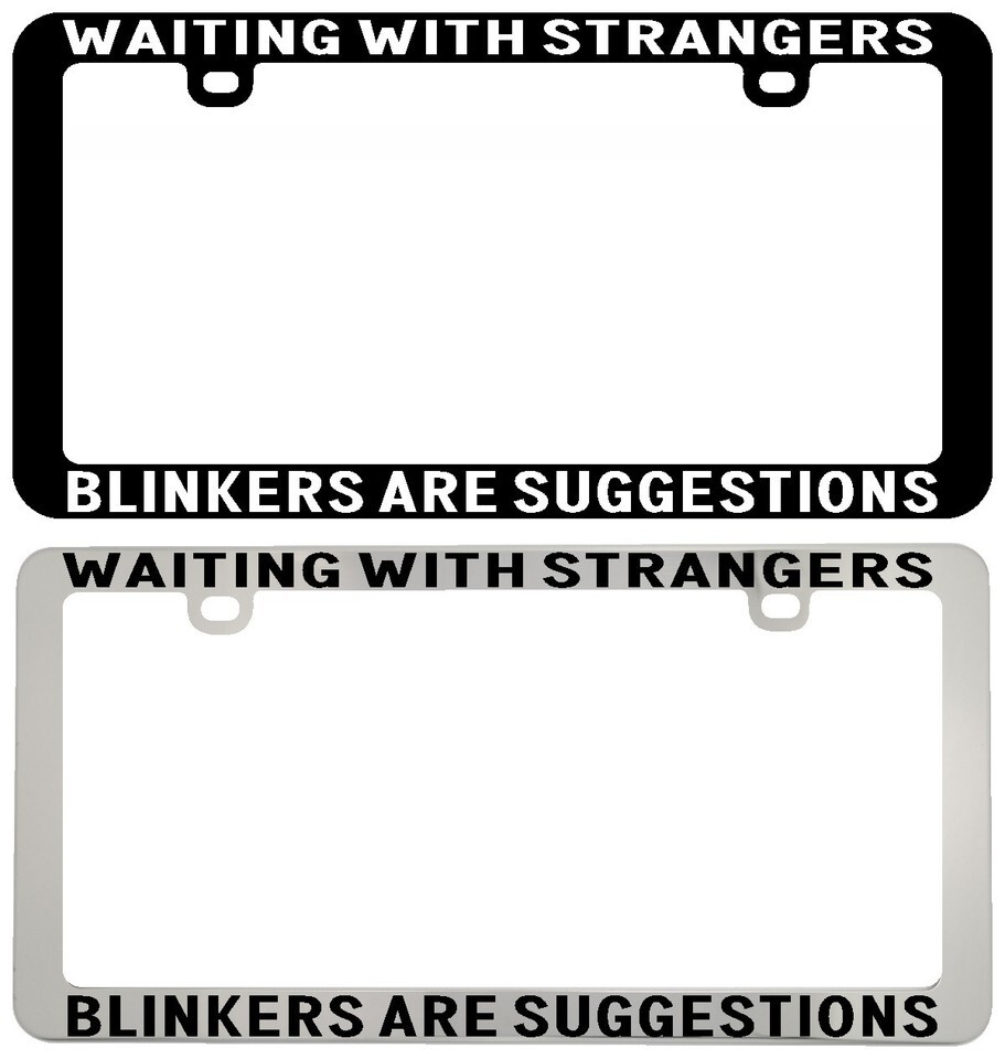 - WAITING WITH STRANGERS BLINKERS ARE SUGGESTIONS. License Plate Frame