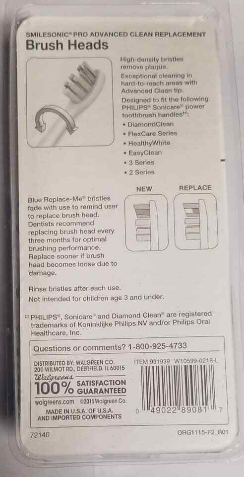 - Walgreens Premium Sonic Replacement Brush Heads 3 Brush Heads (LOC 404 CR-6)