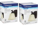 - Wall Fixture Light Oil Rubbed Bronze w/Amber Linen Glass Westinghouse Midori 2PK