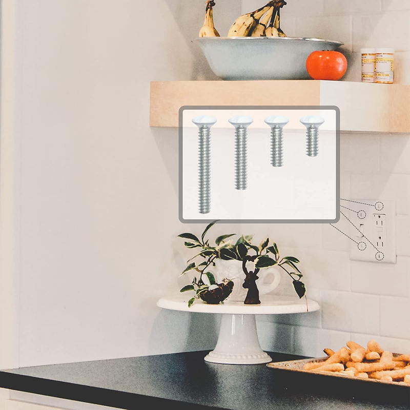 [Material]: Outlet screws made of carbon steel, screw heads by high temperature white paint cover, the outlet cover screws is sturdy and durable.