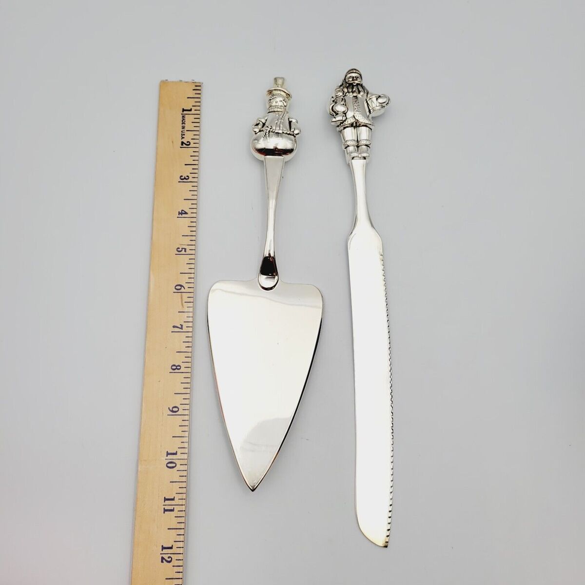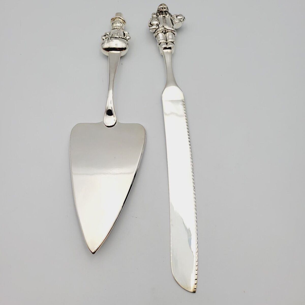 - Wallace 2 Pc Pie Cake Server Set Silversmith Christmas Santa Snowman Flatware Vt